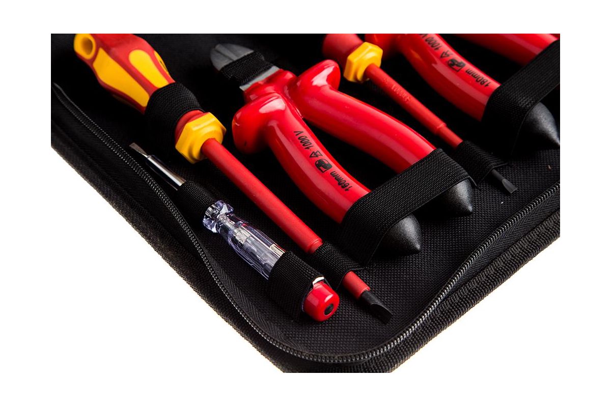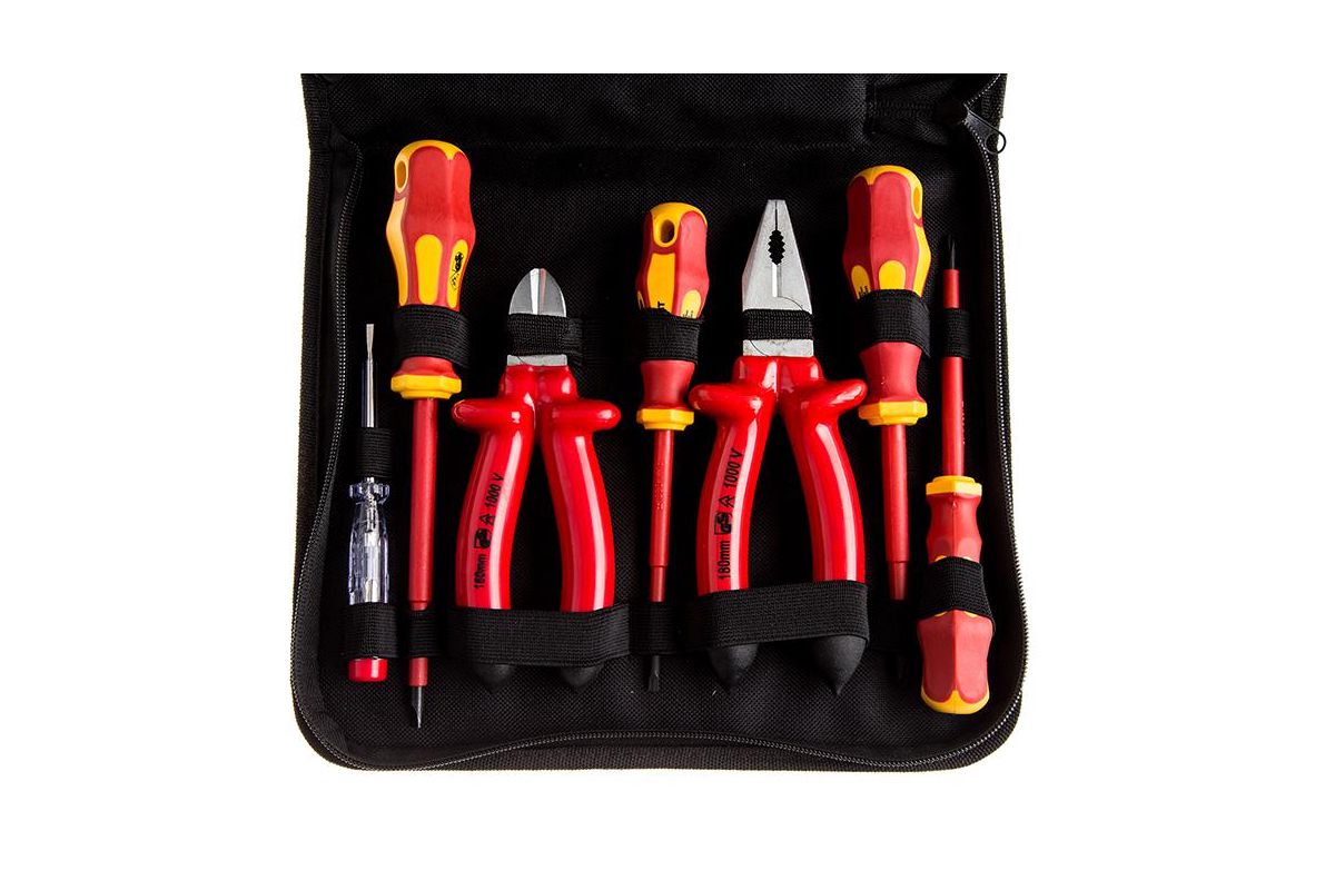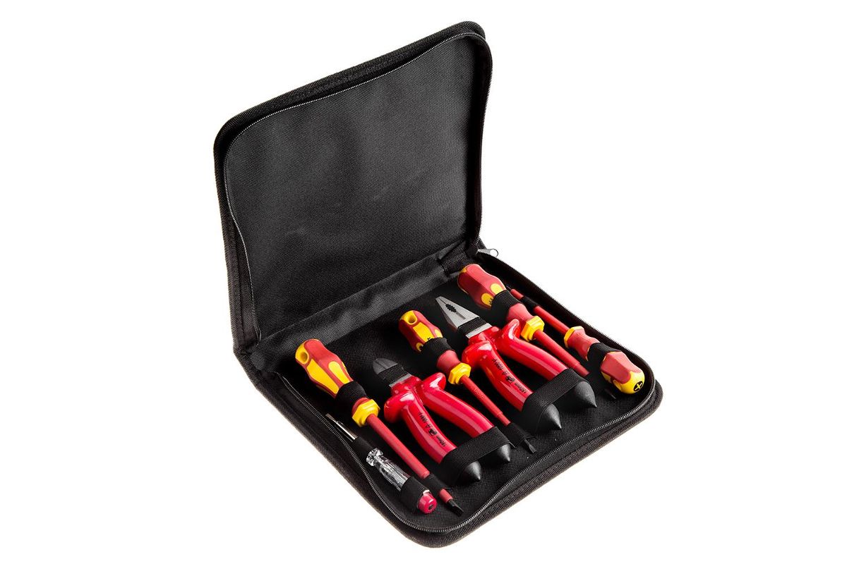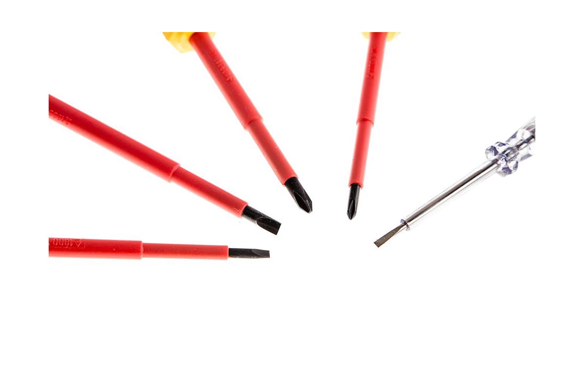 КВТ НИИ -09 – универсальный набор инструментов для электриков. Включает самые необходимые инструменты для работ с электросетями и приборами. В наборе 7 предметов.