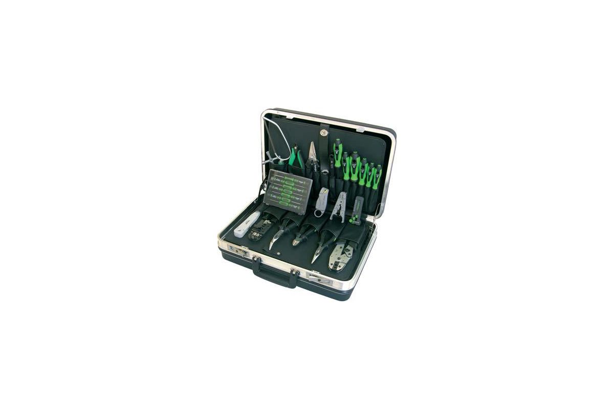 Чемодан для сервисного обслуживания сетей 21 компонент, жесткая обшивка, черный. Для электромонтеров и специалистов по налаживанию сетей.