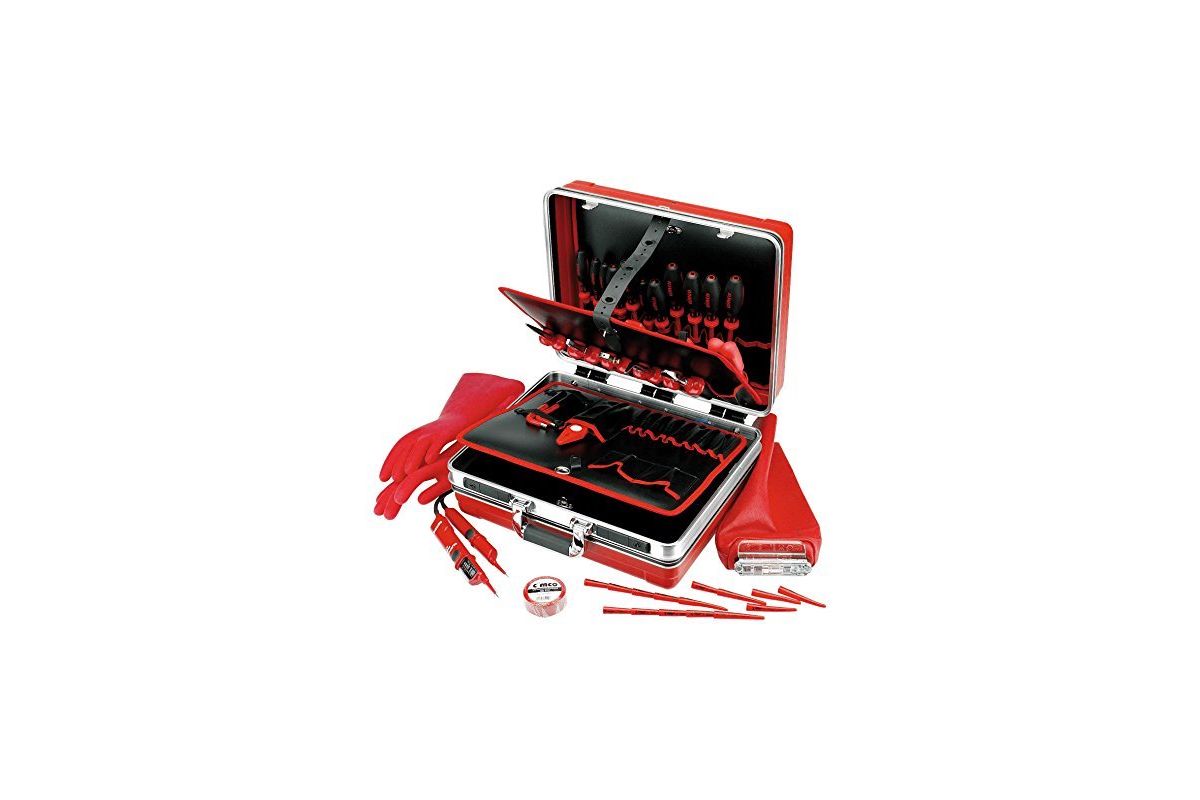 Набор профессионального изолированного инструмента KLASSIK ''Электробезопасность'' ддля мастеров-электриков из 47 предметов. Telefonzange mit geraden Backen 200 mm • Telefonzange mit gebogenen Backen 200 mm • Rundzange 160 mm • Kombinationszange 180 mm