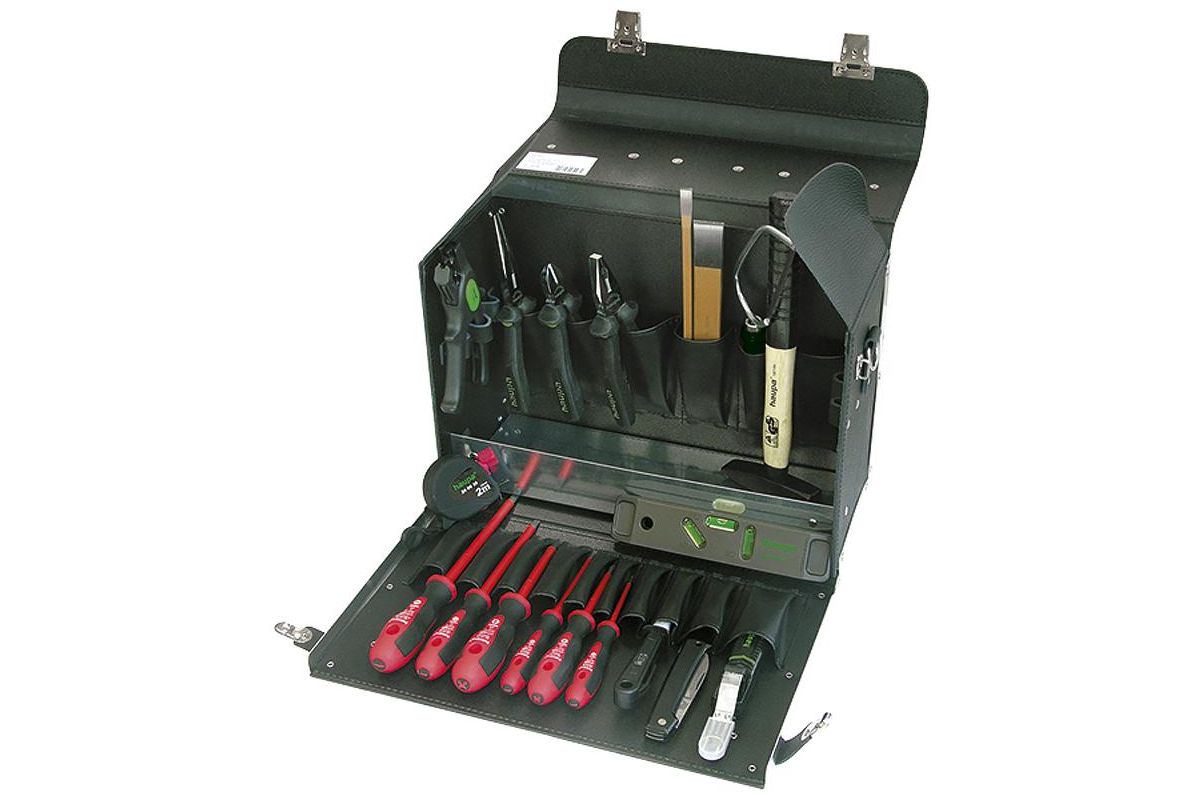 Чемодан для инструмента “Alpha” 19 компонентов. Чемодан из черной воловьей кожи, укомплектован 19 инструментами