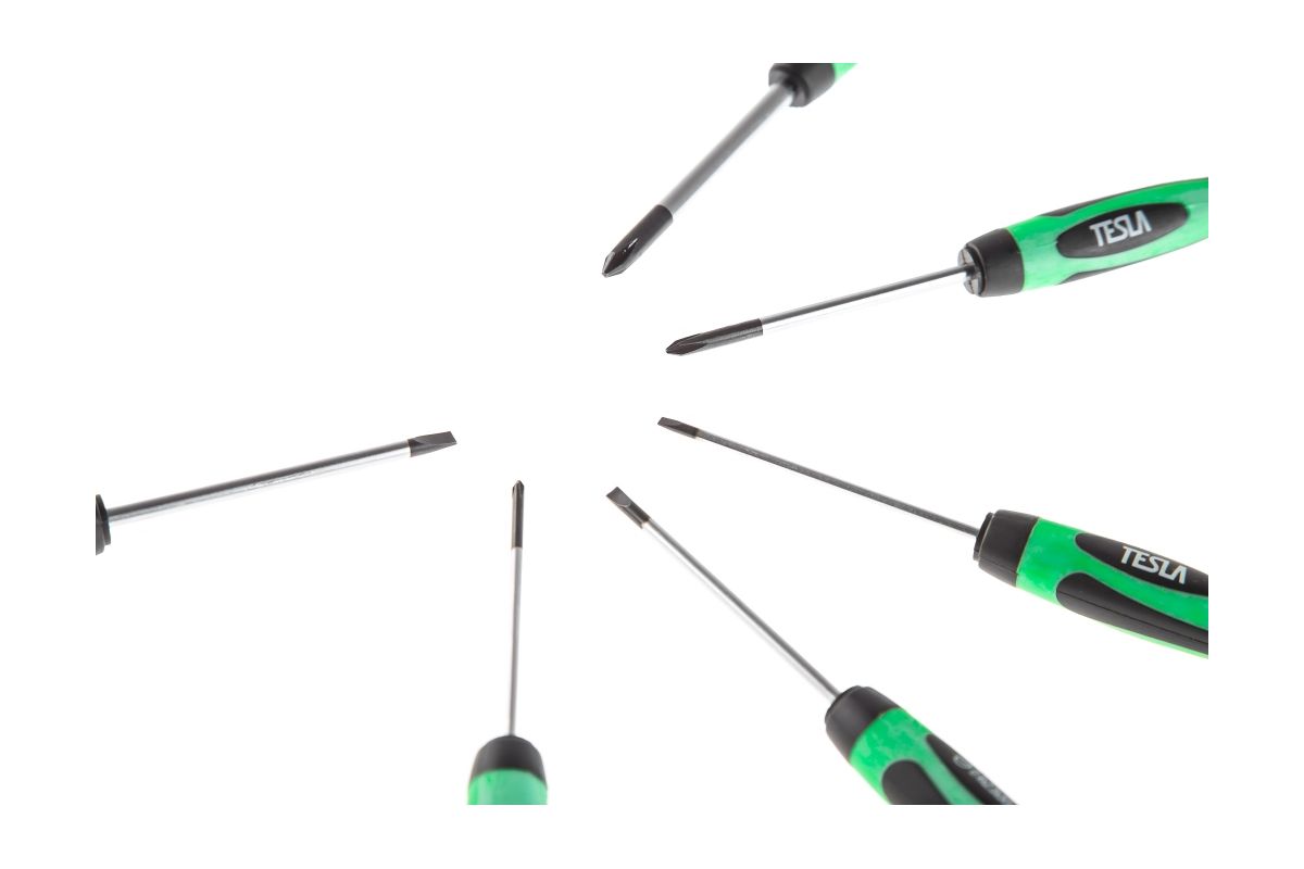 Отвёртки для больших и малых шурупов. Набор подойдёт для сборки и ремонта компактного электрооборудования.