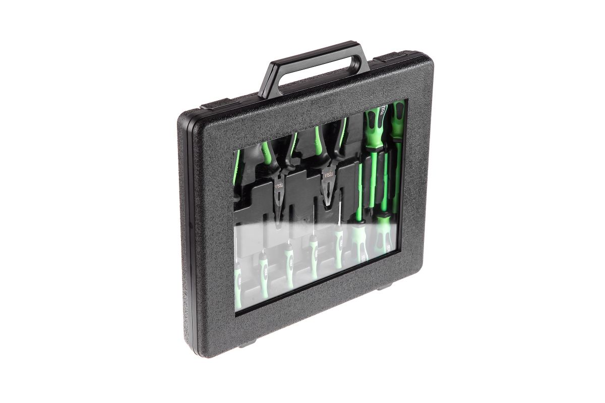 TESLA SET 3 – набор диэлектрических инструментов для дома, автомобиля и дачи из 13 предметов – шарнирно-губцевых инструментов и отвёрток. Переносит напряжение до 1000 В. Поменять розетку, подкрутить разболтавшиеся гайки, обрезать и закрепить провода - SET 3 подойдёт для всего. Поставляется в кейсе.