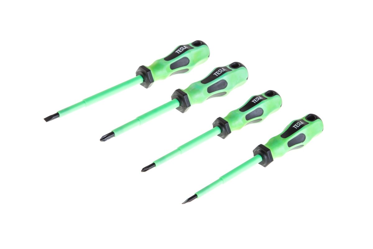 Двухуровневая изоляция металлических частей. У больших отвёрток неизолированны только рабочие части.