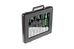 Пластиковый кейс с индивидуальным отделением для каждого инструмента. Всё лежит на своём месте и не теряется при перевозке.