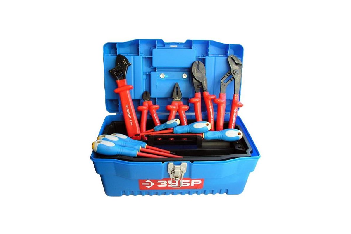 ЗУБР 2214-H12 — набор диэлектрических инструментов бытового класса. Комплект состоит из 12 предметов. Все инструменты в комплекте имеют сертификат, который подтверждает возможность их использования при проведении электромонтажных работ под напряжением до 1000 В. Набор поставляется в пластиковом боксе. Вес модели — 3,76 кг.
