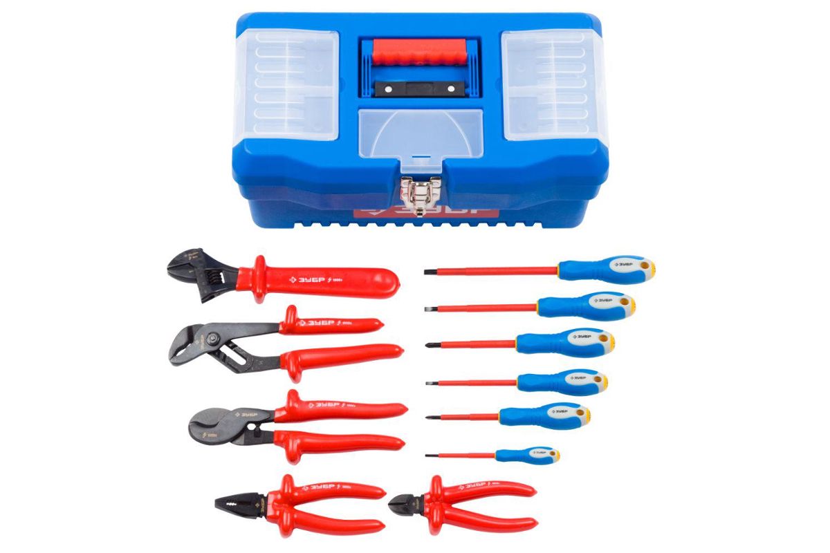 ЗУБР 2214-H12_z01 – специфицированный высоковольтный набор. Включает в себя 12 диэлектрических инструментов для работы под напряжением до 1000 В. Поставляется в пластиковом ящике.