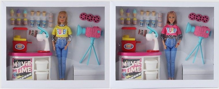- В комплекте с куклой мебель и декорациителекамера, пленка, попкорн, напитки