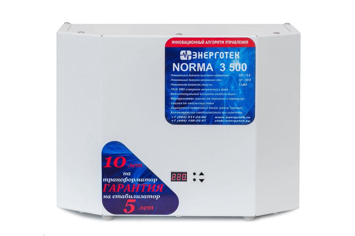 Стабилизатор напряжения ЭНЕРГОТЕХ NORMA 3500 ±15 В. 121-259 В. время реакции 20 мс