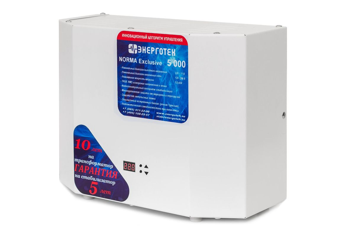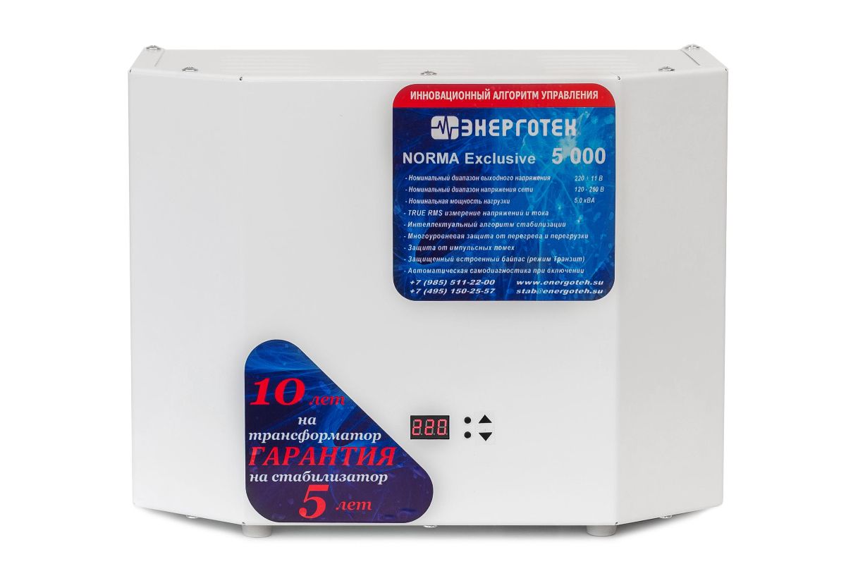 Стабилизатор напряжения ЭНЕРГОТЕХ NORMA Exclusive 5000 ±11 В.120-260 В. время реакции 20 мс