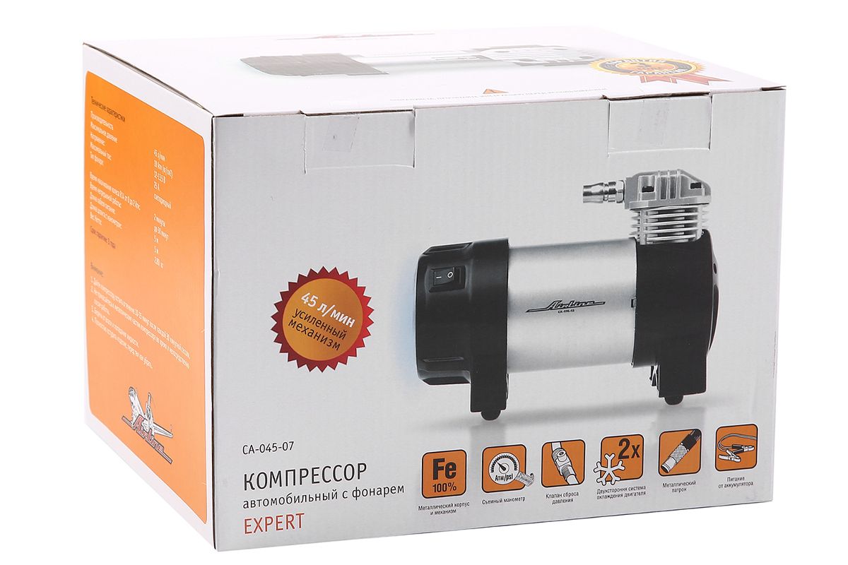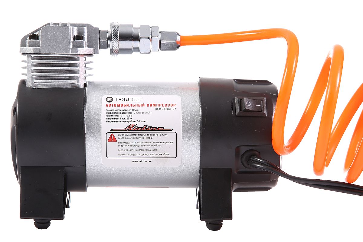Автомобильный компрессор CA-045-07 EXPERT от AIRLINE позволяет быстро и без усилий накачать шины легковой или легкогрузовой машины, внедорожника, мотоцикла, велосипеда и т.д. На накачивание одной шины R14 уходит всего 2 минуты!