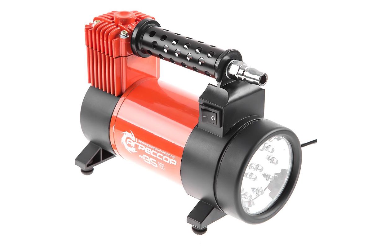 Компрессор АГРЕССОР AGR-35L автомобильный металл12V 180W 35л/мин LED фонарь сумка