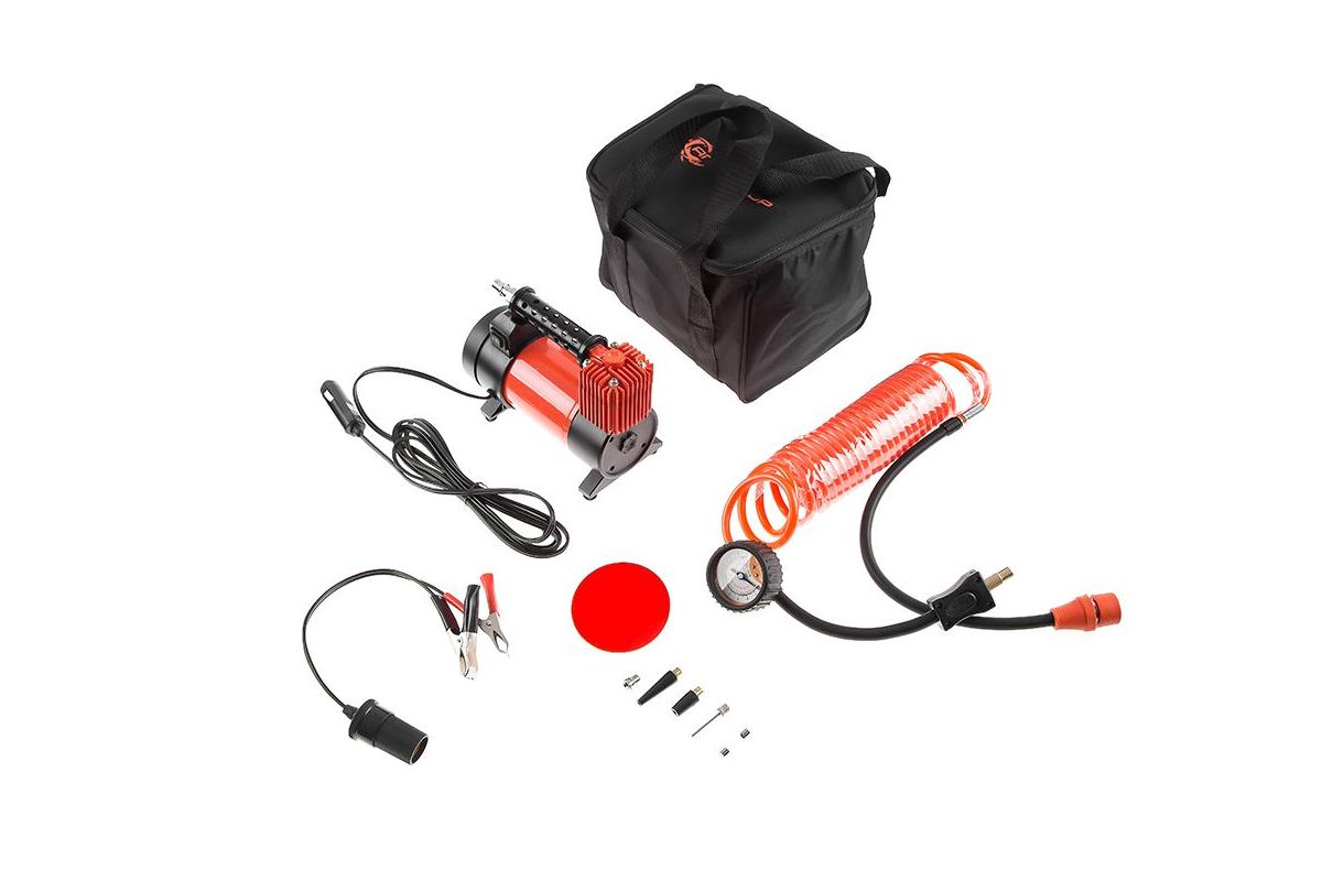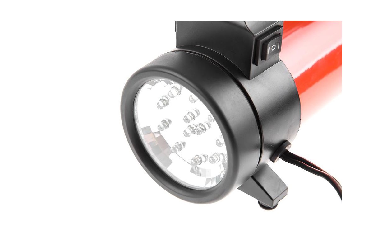 Компактный автомобильный компрессор в металлическом корпусе оснащен встроенным фонарем. Производительность — 35 л/мин. Отличный вариант для легкового автомобиля малого и среднего класса. Питание идет от прикуривателя или клемм аккумулятора (переходник в комплекте). В комплекте идут переходники для накачки велосипедных шин, матрасов, мячей. До 30 минут беспрерывной работы. 3 года гарантии.
