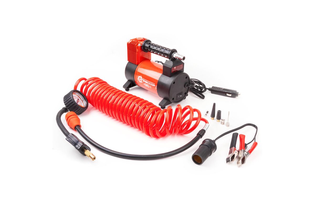 Компактный автомобильный компрессор в металлическом корпусе. Отличный вариант для легкового автомобиля малого и среднего класса с диаметром шин R14 / R13 и меньше. Питание от прикуривателя или клемм аккумулятора. В комплекте идут переходники для накачки велосипедных шин, матрасов и переходник на клеммы АКБ.