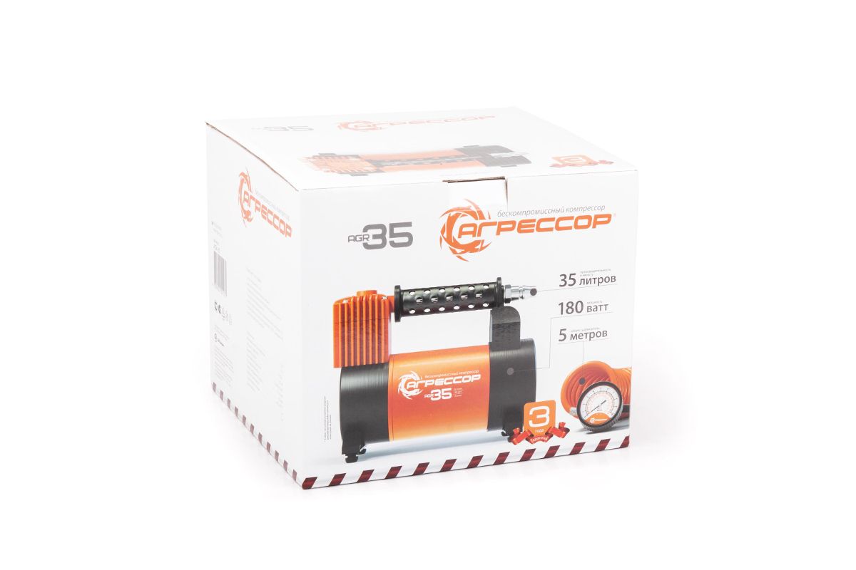Компрессор АГРЕССОР AGR-35 автомобильный металл 12V 180W 35л/мин сумка