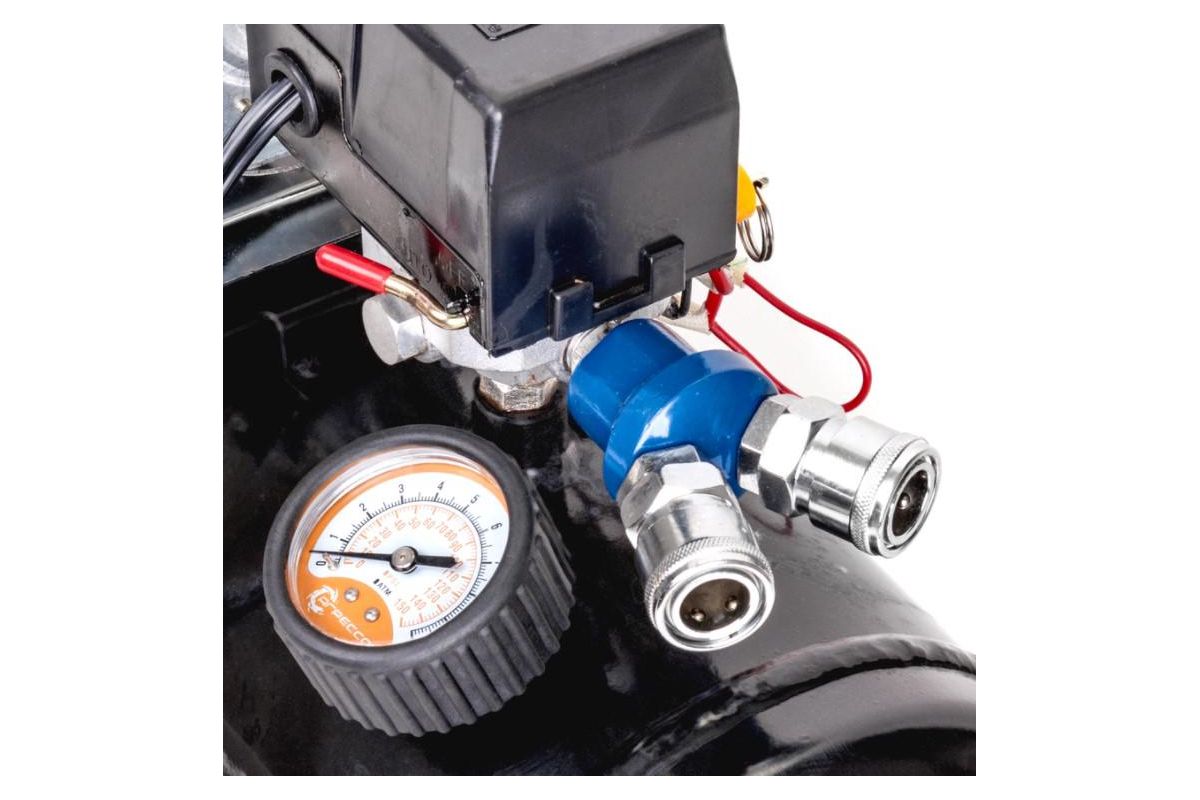 На рукоятке-пистолете встроенный двухшкальный манометр для контроля давления. После заполнения ресивера компрессор автоматически отключается. 10-метровый шланг сделан из морозостойкого полиуретана. Поршень насоса оснащен уплотнительным кольцом из гибкого жаропрочного тефлона. Шины накачиваются непосредственно из ресивера под высоким давлением, что ускоряет процесс накачивания колес.