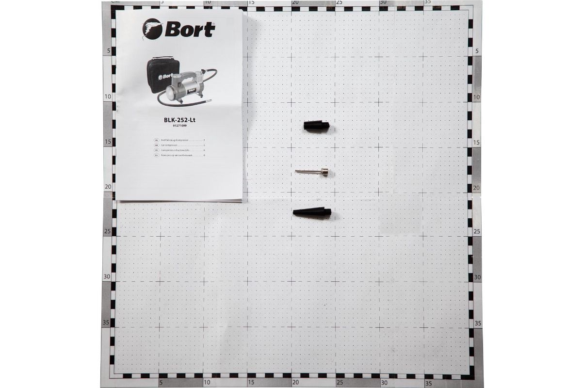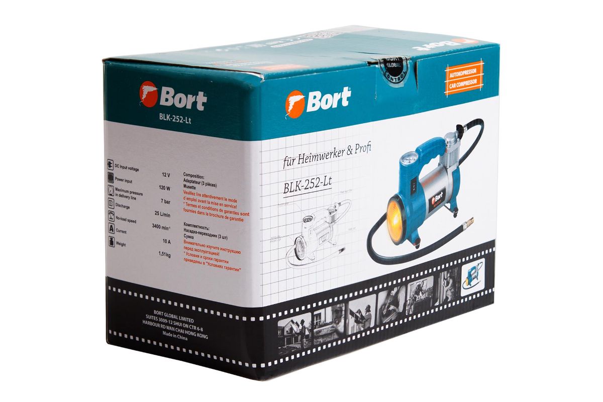 - Автомобильный компрессор BORT BLK-252-Lt выдает 25 литров в минуту и накачивает шины, опережая своих, часто более крупных, конкурентов;