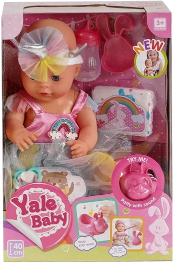 - В комплекте с куклой горшок, подгузник, бутылочка для кормления, пустышка, тарелка