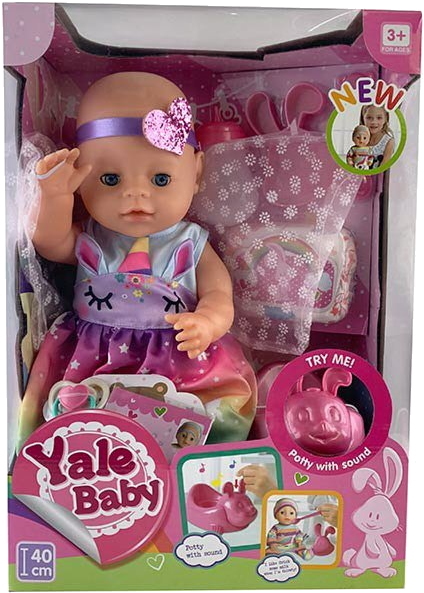 - В комплекте с куклой горшок, подгузник, бутылочка для кормления, пустышка, тарелка