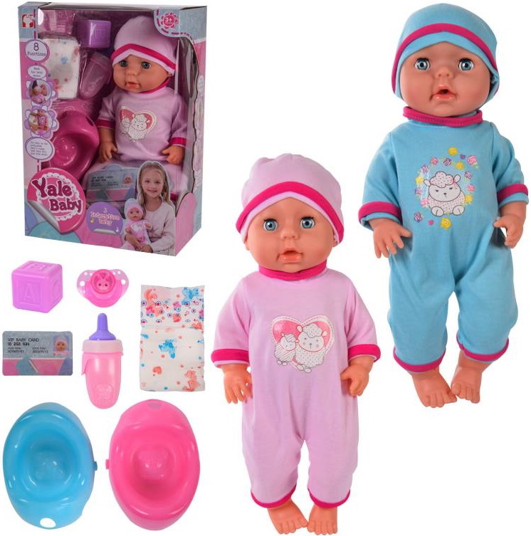 - В комплекте с куклой горшок, подгузник, бутылочка для кормления, пустышка, кубик