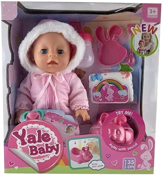 • В комплекте с куклой горшок, подгузник, бутылочка для кормления, пустышка, тарелка