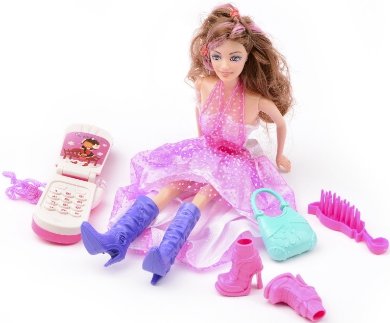 - В комплекте с куклой сумочкарасческа, мобильный телефон