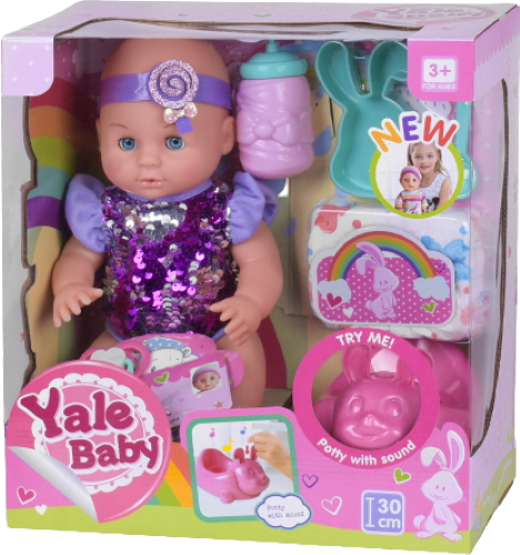 - В комплекте с куклой горшок, подгузник, бутылочка для кормления, пустышка, тарелка / ложечка /