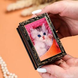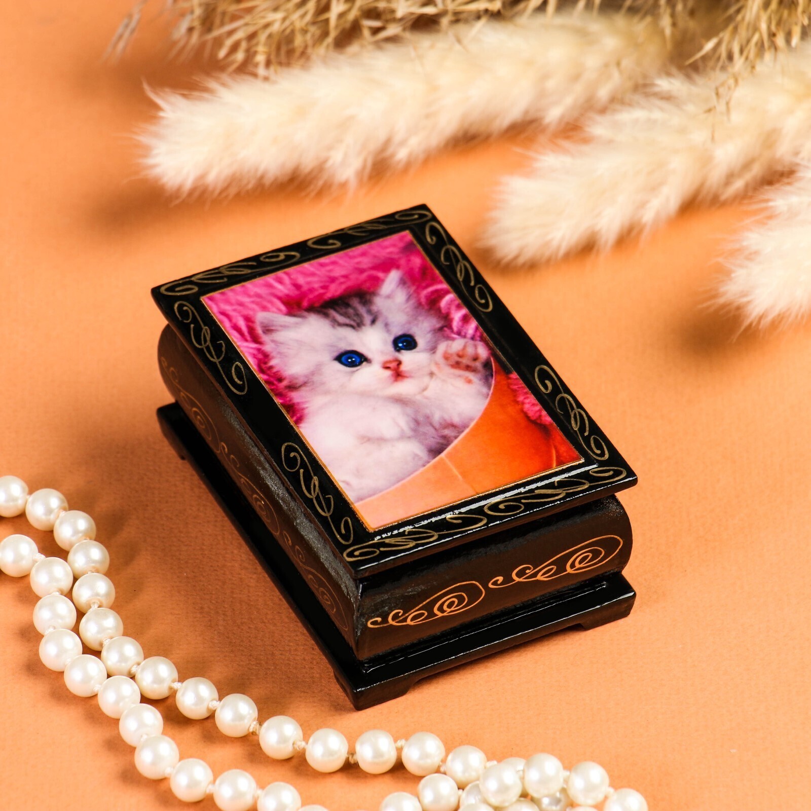Шкатулка «Белый котенок на розовом пледе», 6×9 см, лаковая миниатюра