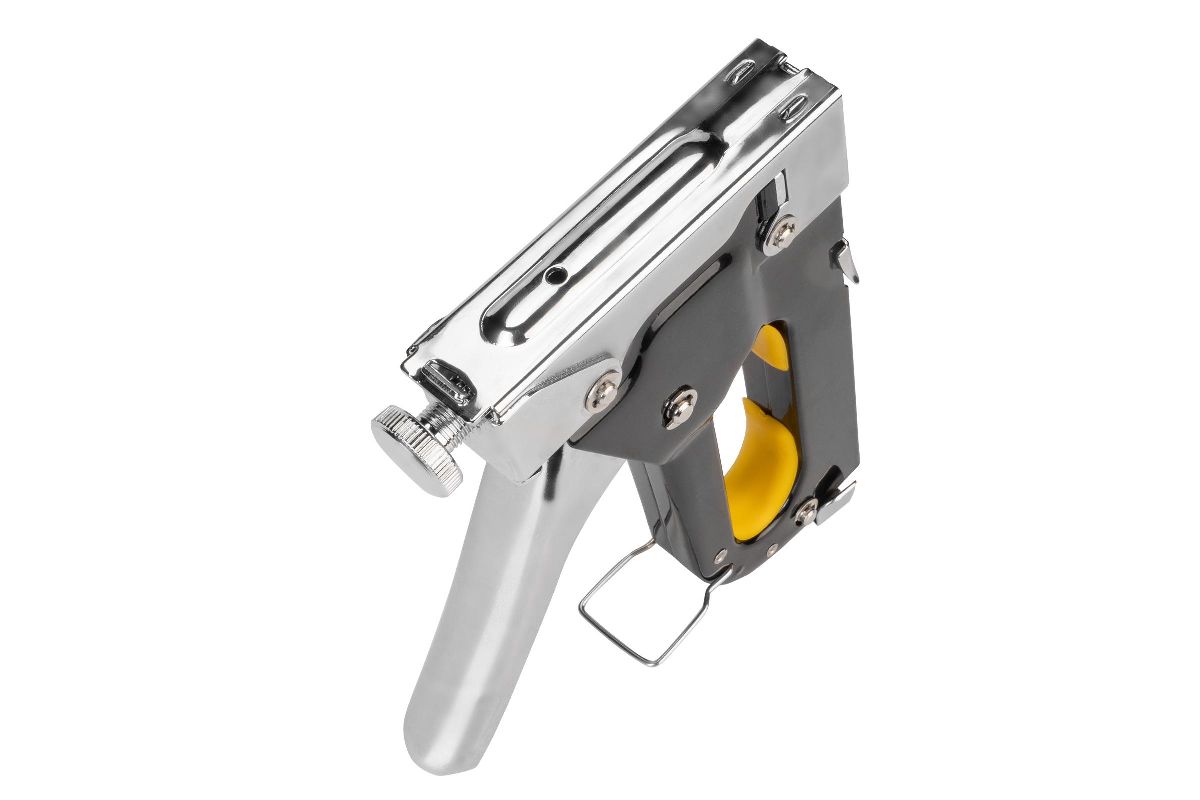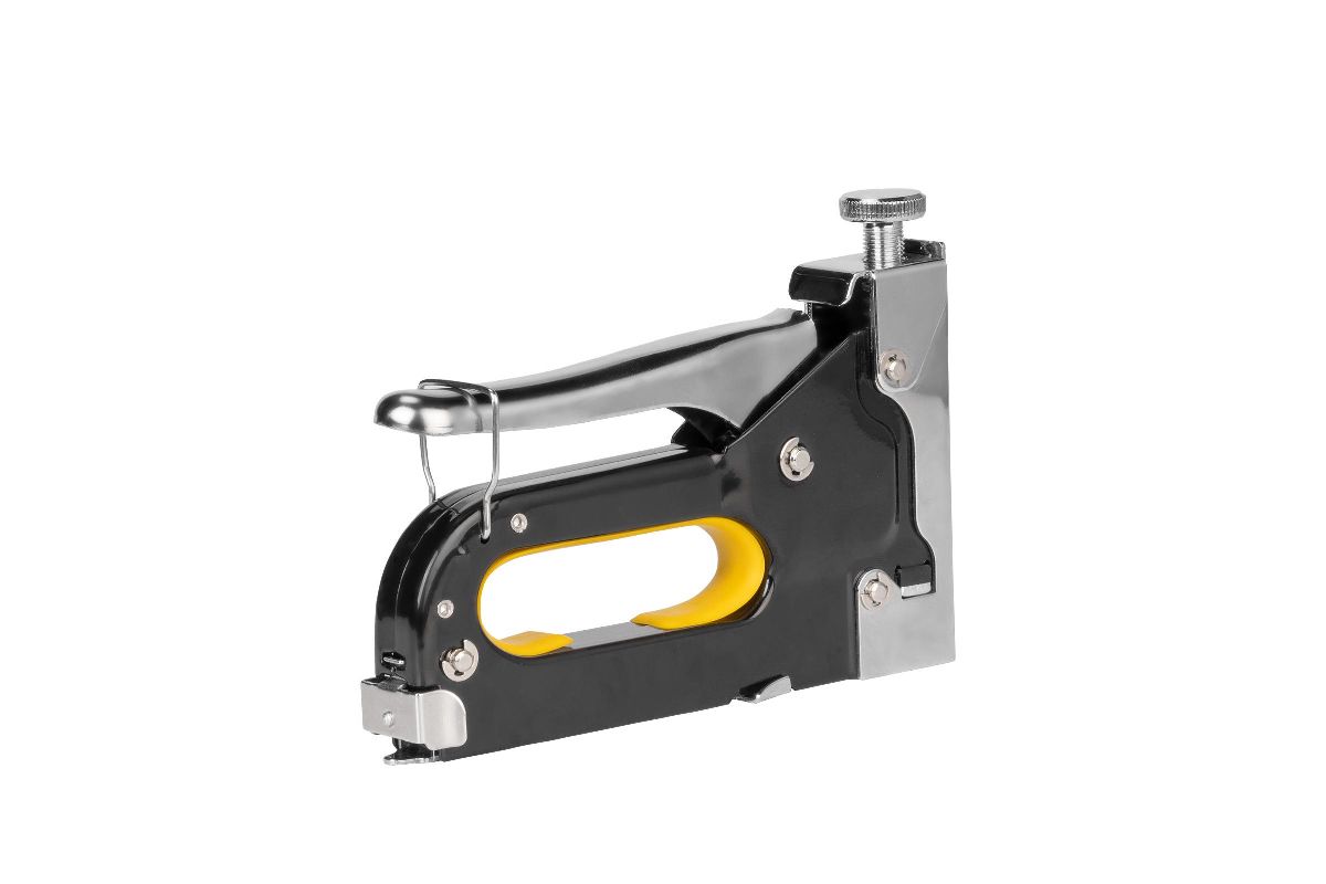 Скобозабивной металлический пружинный степлер с регулировкой усилия.