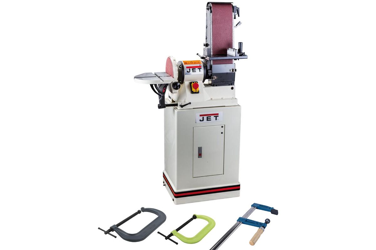 В состав набора входят: Станок тарельчато-ленточный JET JSG-96 дерево 1000Вт 220В 1400об/мин круг 225мм лента 1220х150мм, Струбцина WILTON 14298EU g-образная 400 series 165х300мм, Струбцина WILTON 14305EU g-образная 400sf series 130х200мм, Струбцина WILTON 76103 универсальная f-образная 120 x 500мм