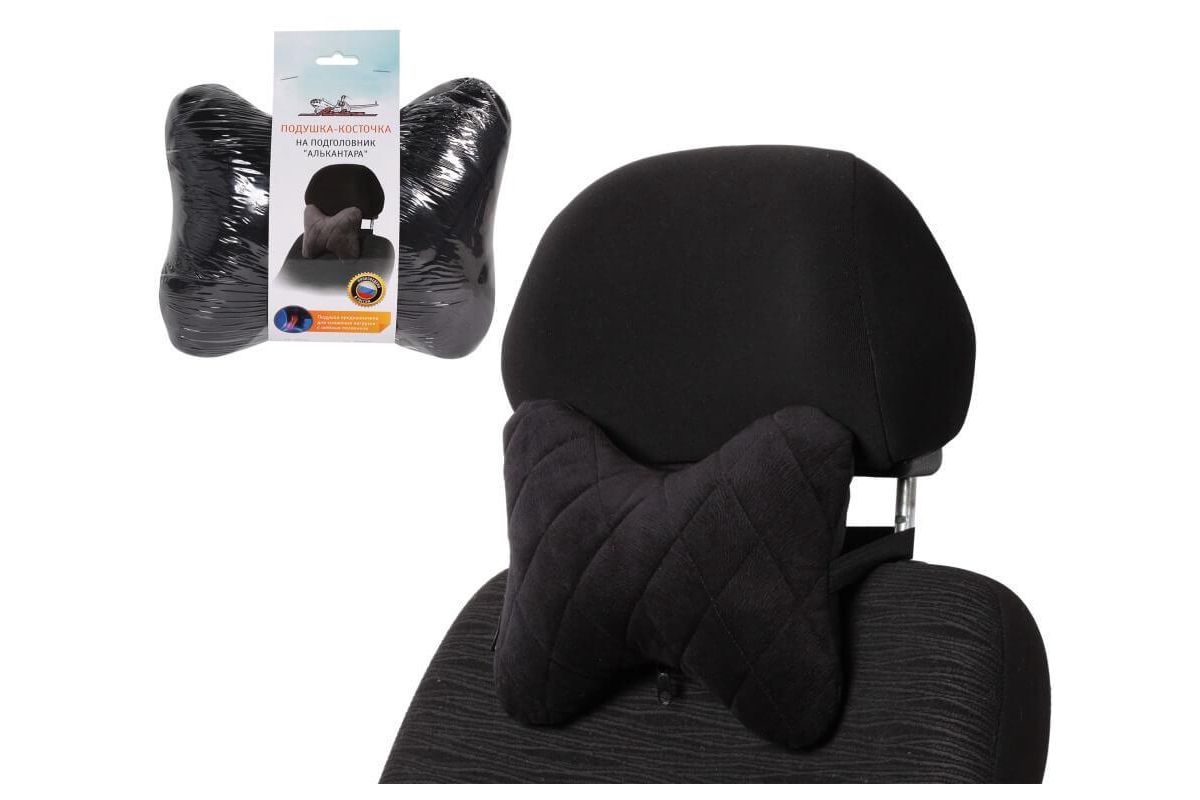 Подушка-косточка на подгол.''Алькантара'', ткань, 1 шт., черная (ASP-B-01) AIRLINE