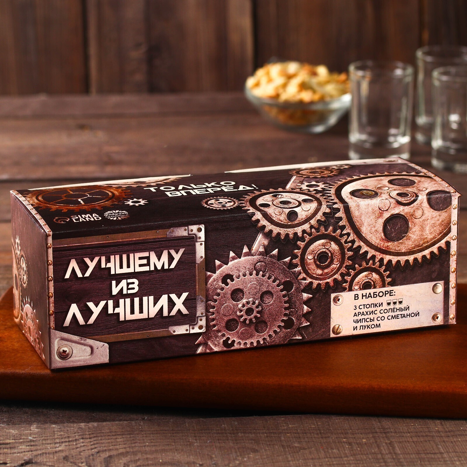 Набор «Лучшему из лучших», рюмки 3 шт, чипсы 50 г, арахис 100 г