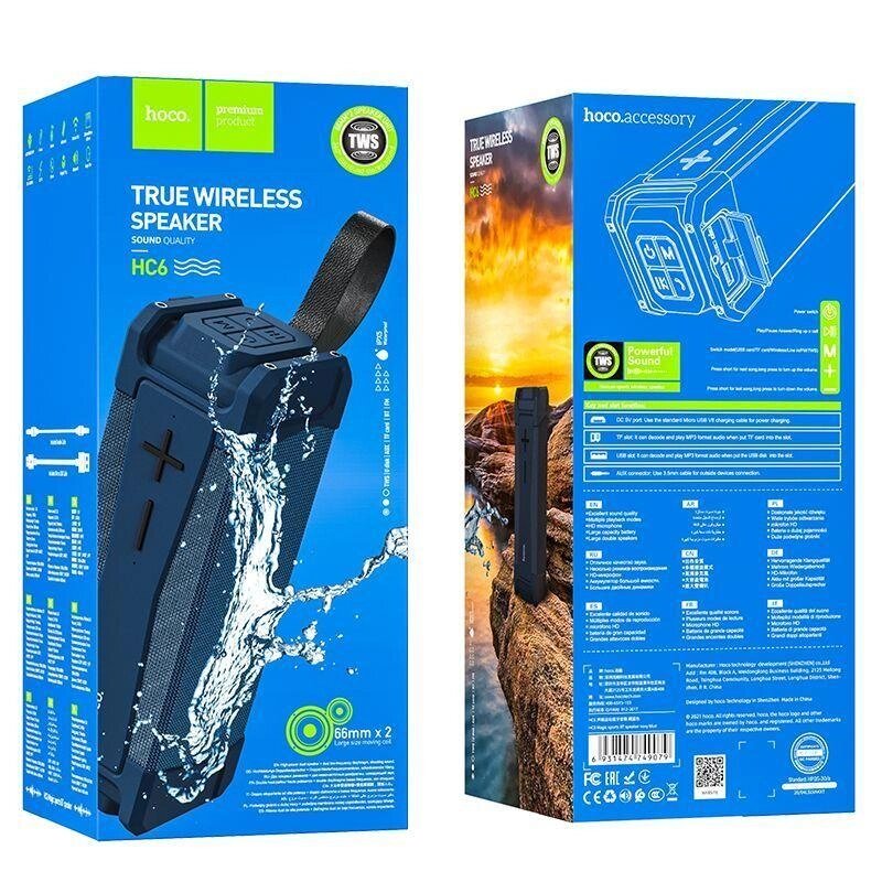 Портативная колонка hoco HC6 синяя (20W, BT 5.0, USB, AUX, TF, FM, TWS, 4000mah)