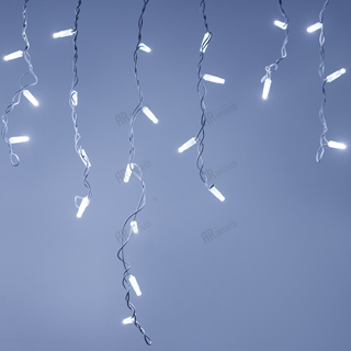 Светодиодная гирлянда БАХРОМА серии CLASSIC. Размер 2400x600 (длина 2400 мм, высота 600 мм). Цвет светодиодов БЕЛЫЙ (6000 К), постоянное свечение. Провод из белого ПВХ, диаметр 2.3 мм, 24 ниспадающие нити длиной от 200 до 600 мм. 88 светодиодов размером 7 мм, молочно-белый выпуклый колпачок. Напряжение питания 230 В, потребляемая мощность 6 Вт, степень пылевлагозащиты IP65. Для эксплуатации необходимо приобрести аксессуар для подключения.
