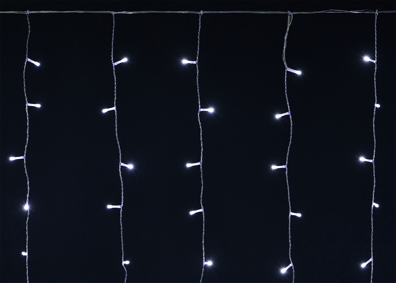 Гирлянда бахрома представляет собой шнур, закрепляемый горизонтально, с ниспадающими нитями разной длины, что создает эффект объемной световой композиции.