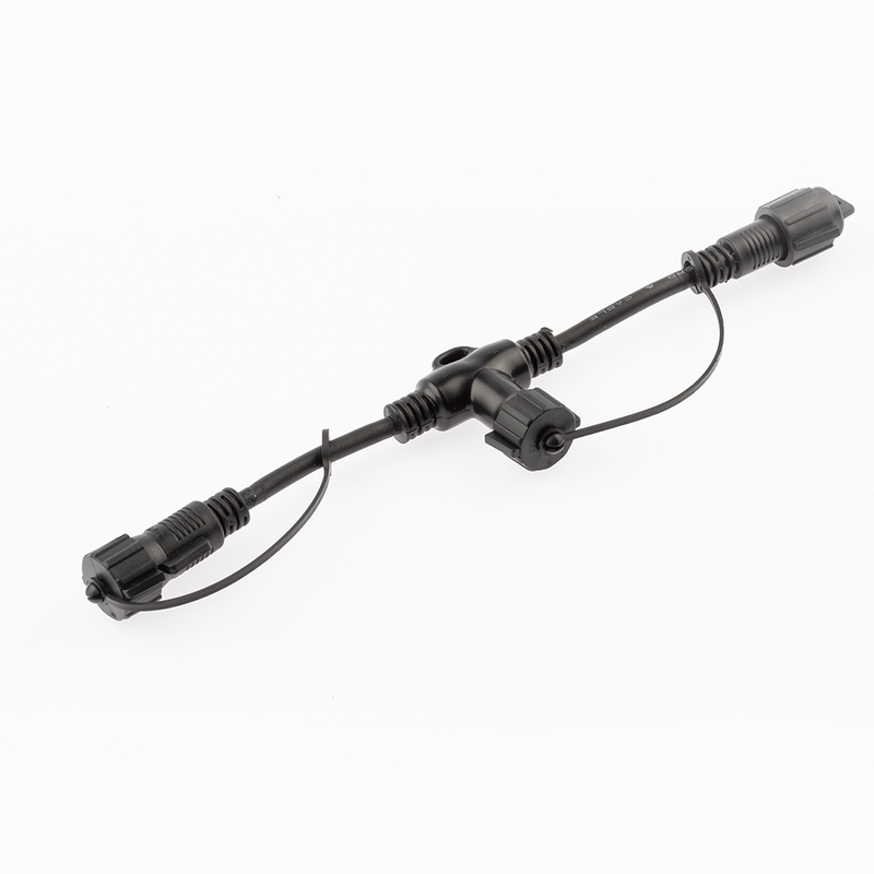 Профессиональный T-образный коннектор ЭРА ERAPS-C для подключения уличных гирлянд при создании масштабной новогодней иллюминации, актуальной для декорирования загородных домов, коттеджей, фасадов зданий, муниципальных объектов, торговых центров, скверов, парков, улиц, уличных веранд кафе и ресторанов, зимних городков, новогодних ярмарок и площадей. Т-образный коннектор для создания профессиональных новогодних инсталляций изготовлен из прочного морозостойкого каучука. Совместим с профессиональными гирляндами IP65 большинства производителей. Обеспечивает высокую защиту соединений от влаги и пыли. Дает возможность создавать длинные световые цепи и могут применяться в экстремальных погодных условиях, таких как ветер или сильные осадки.