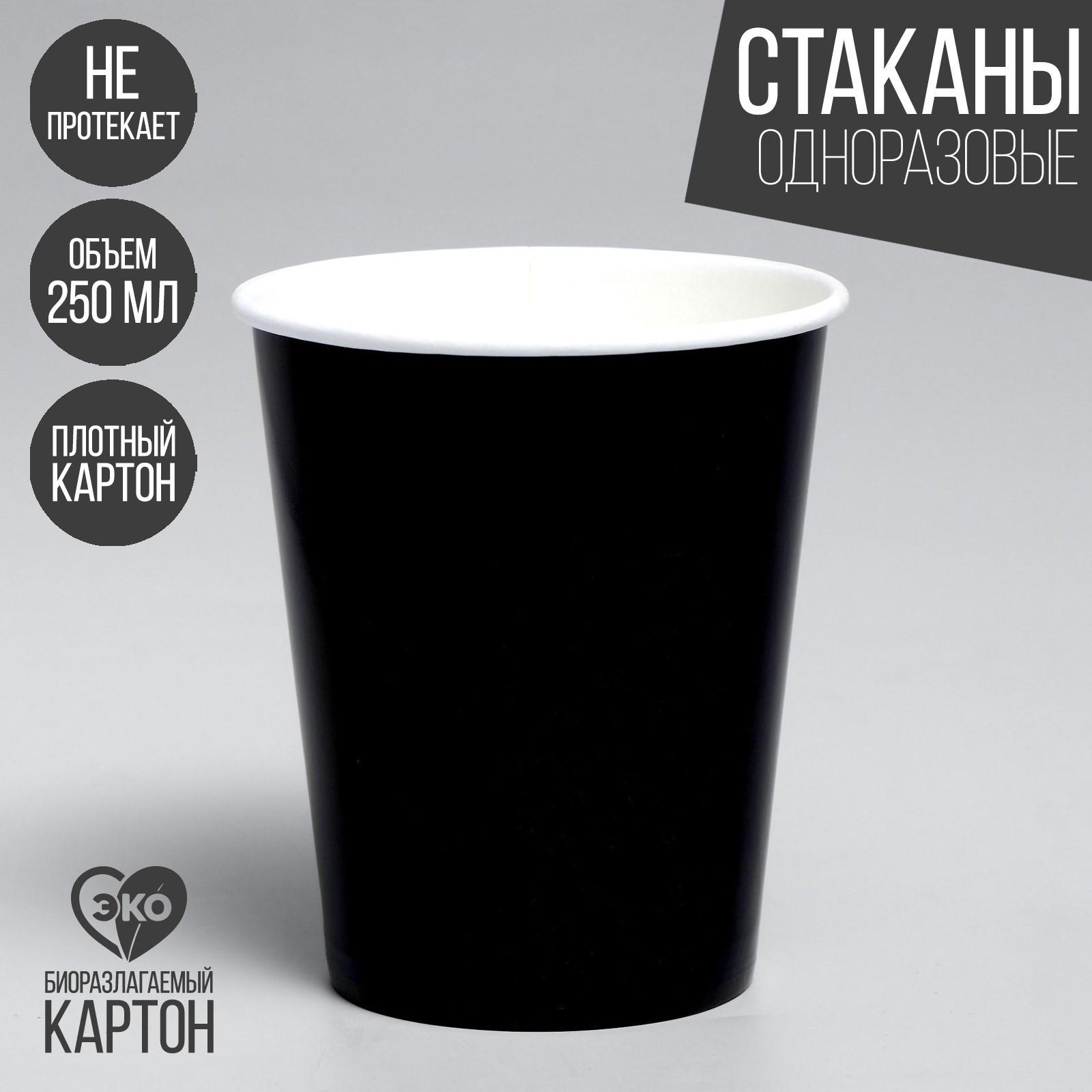 Стакан бумажный однотонный, цвет черный, 250 мл