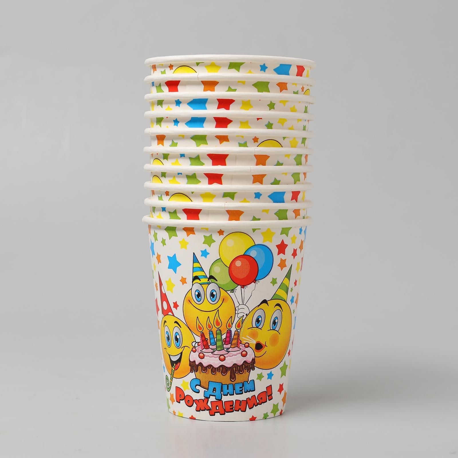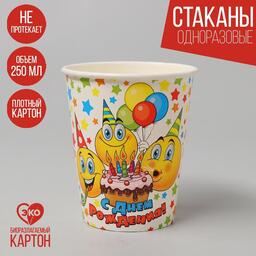 Стакан бумажный «С днём рождения! Смайлы, тортик», 250 мл
