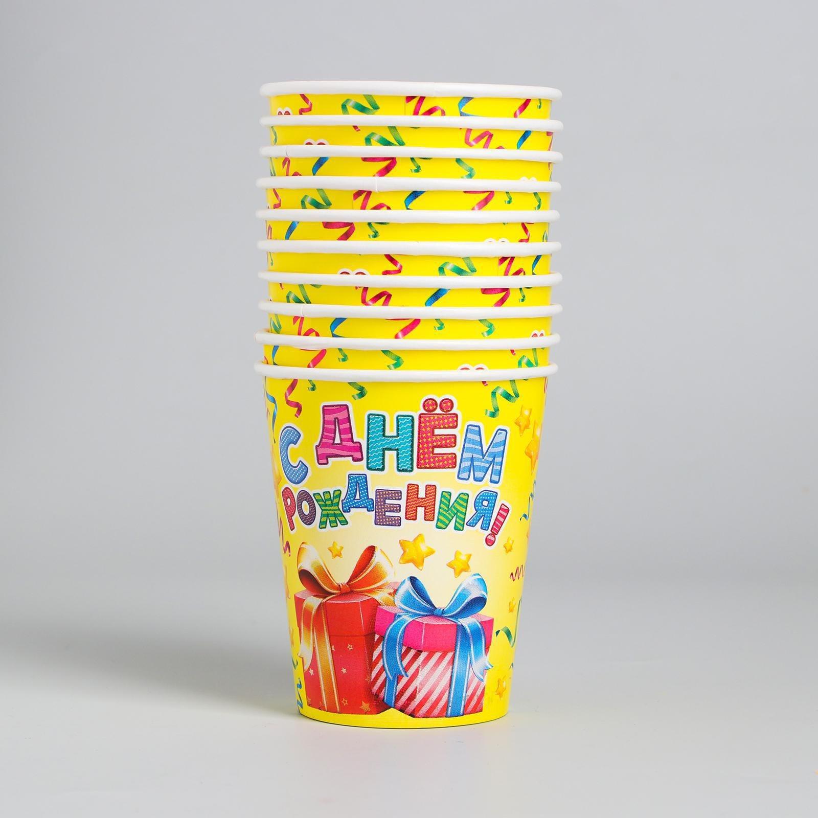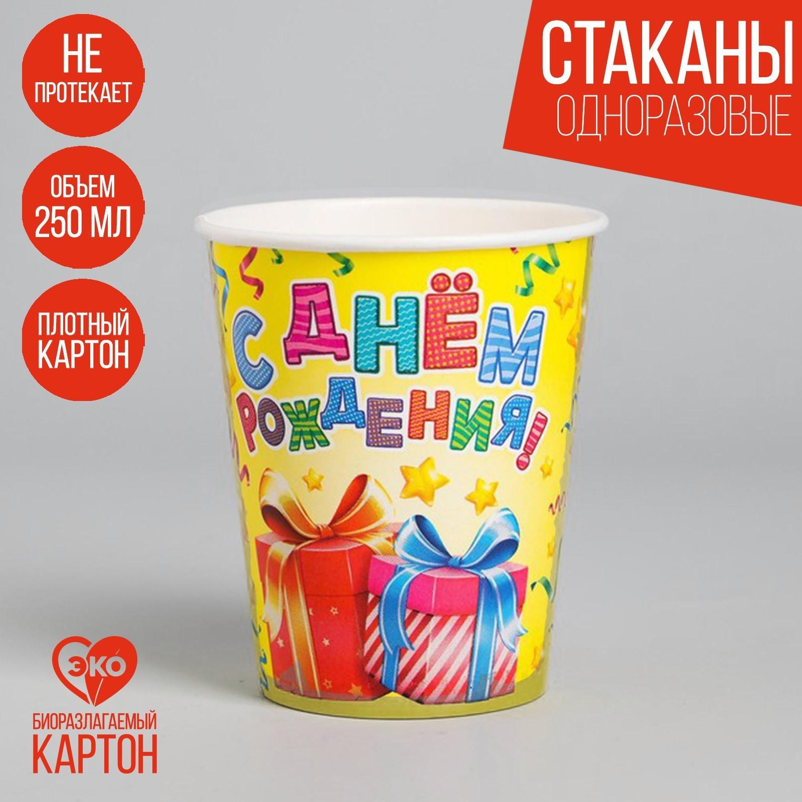 Стакан бумажный «С днём рождения! Подарки», 250 мл