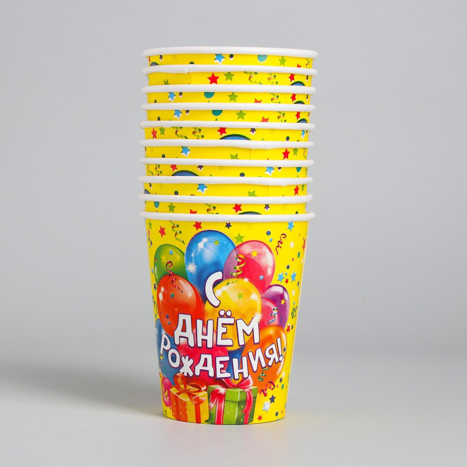 Стакан бумажный «С днём рождения! Шарики, подарки», 250 мл