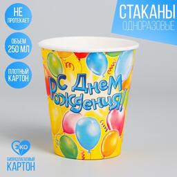 Стакан бумажный «С днём рождения! Воздушные шары», 250 мл