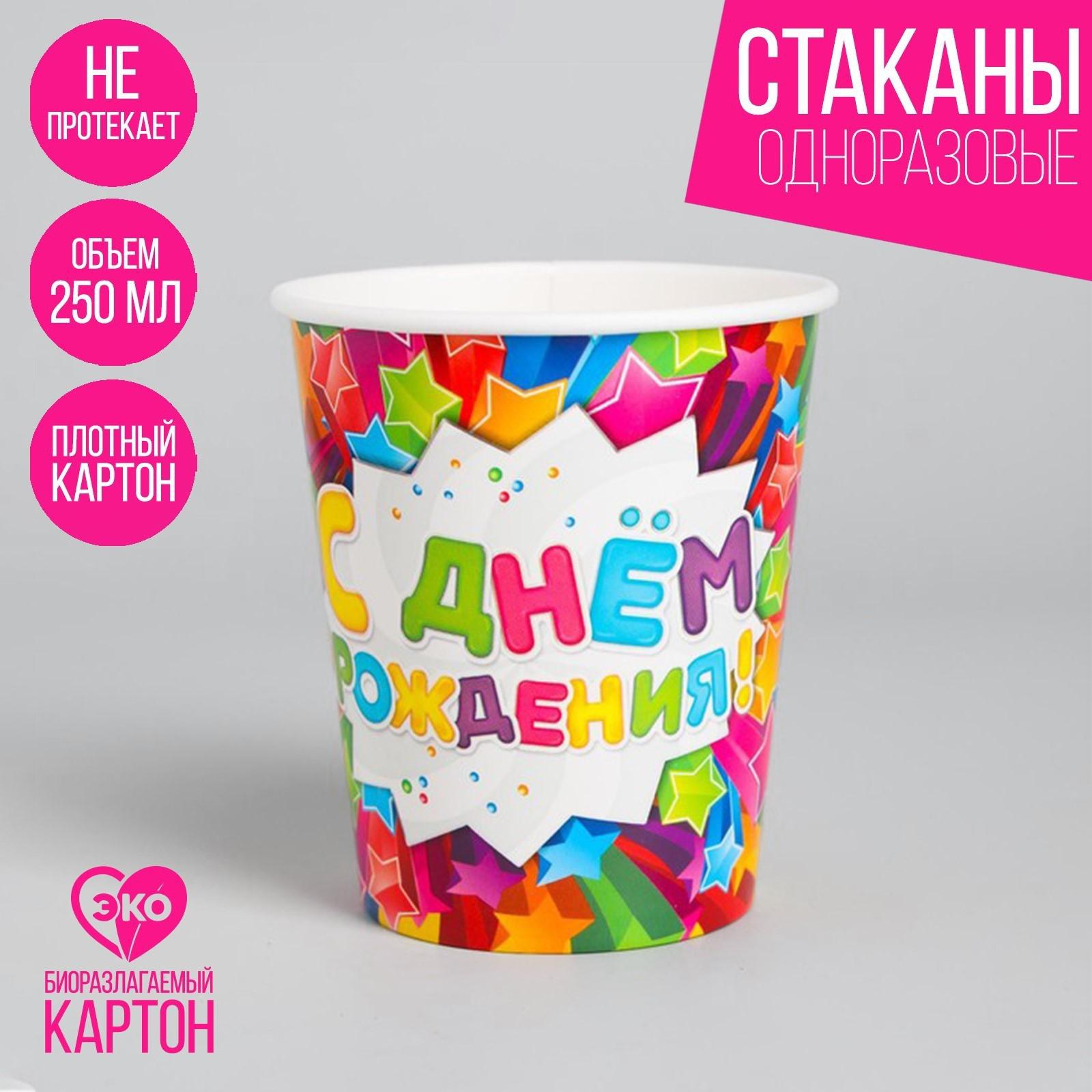 Стакан бумажный «С днём рождения! Звёзды», 250 мл