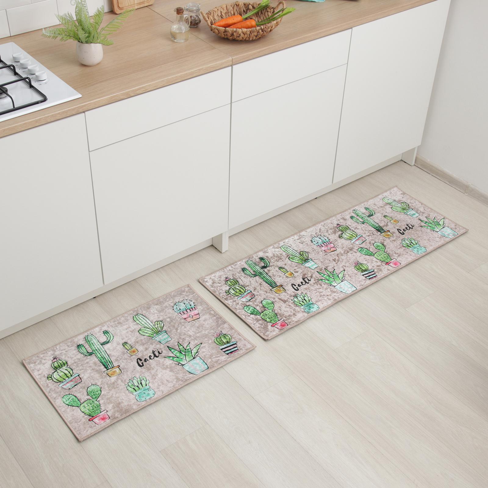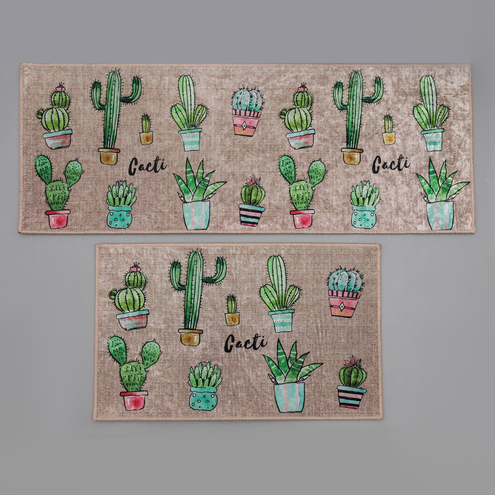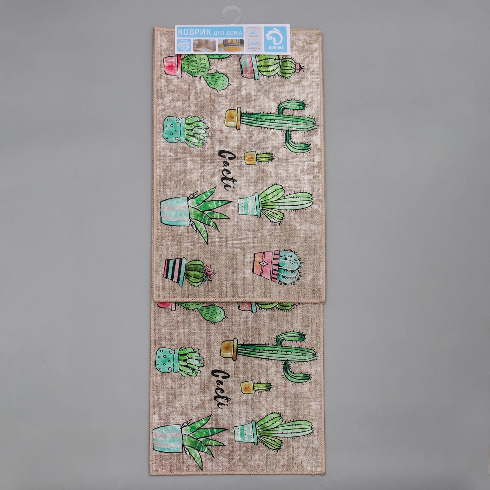 Набор ковриков универсальных Доляна «Кактусы», 2 шт: 45×120, 45×75 см