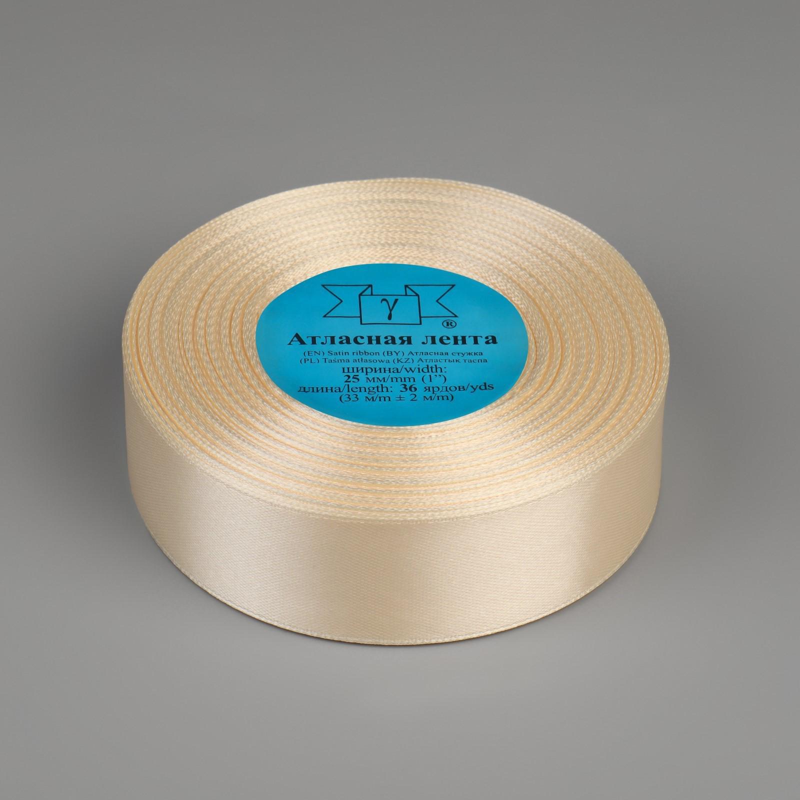 Лента атласная, 25 мм × 33 ± 2 м, цвет кремовый №008