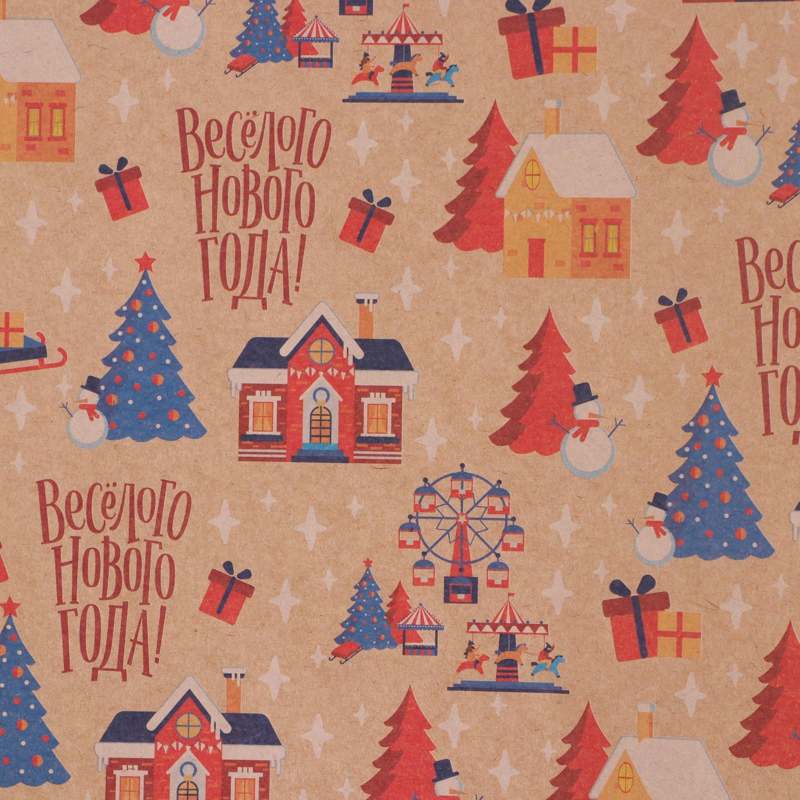 Бумага упаковочная крафтовая «Новогодний город», 50 × 70 см
