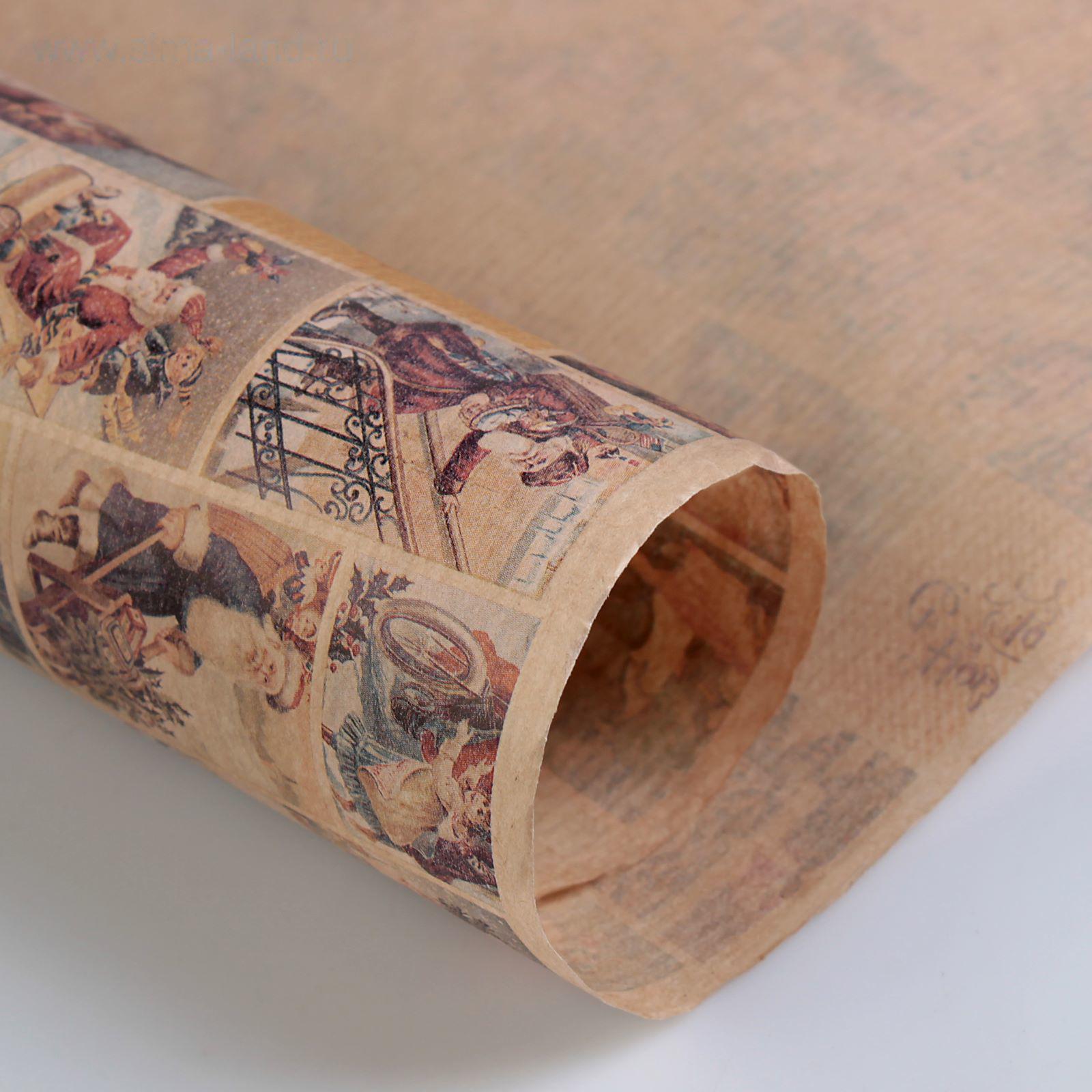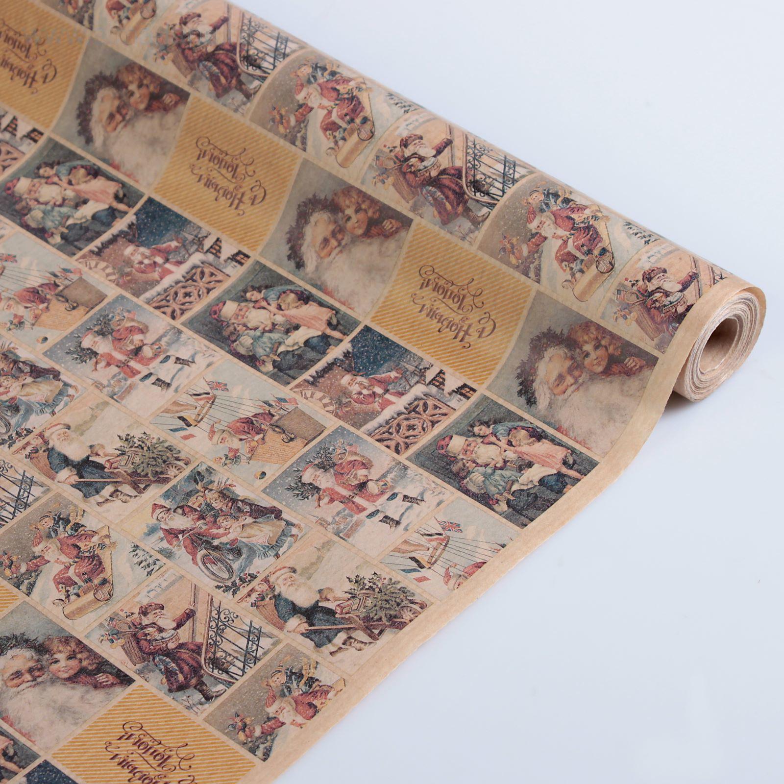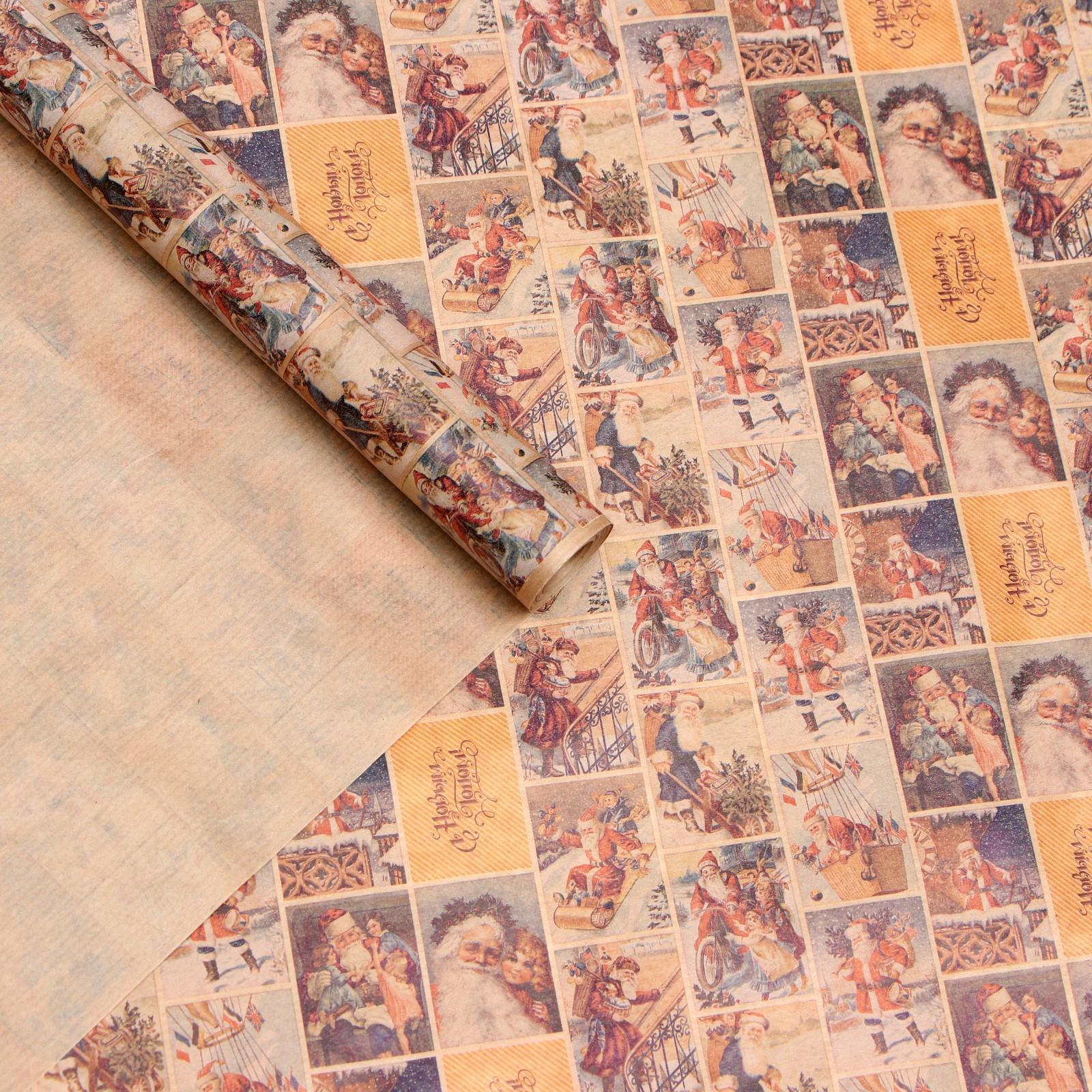 Бумага упаковочная крафт «Открытки с Дедом Морозом», 0,72 х 10 м