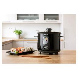 Рисоварка Sencor SRM1001BK/1 л./400 Вт. Працює за принципом приготування на пару. Підходить для приготування всіх видів рису, зокрема рису для суші. Автоматичне відключення після приготування з наступним переходом на функцію «Підтримка тепла» (рис зберігає тепло до 6 годин). Скляна кришка з пара виходу. Практичні ручки з обох боків.