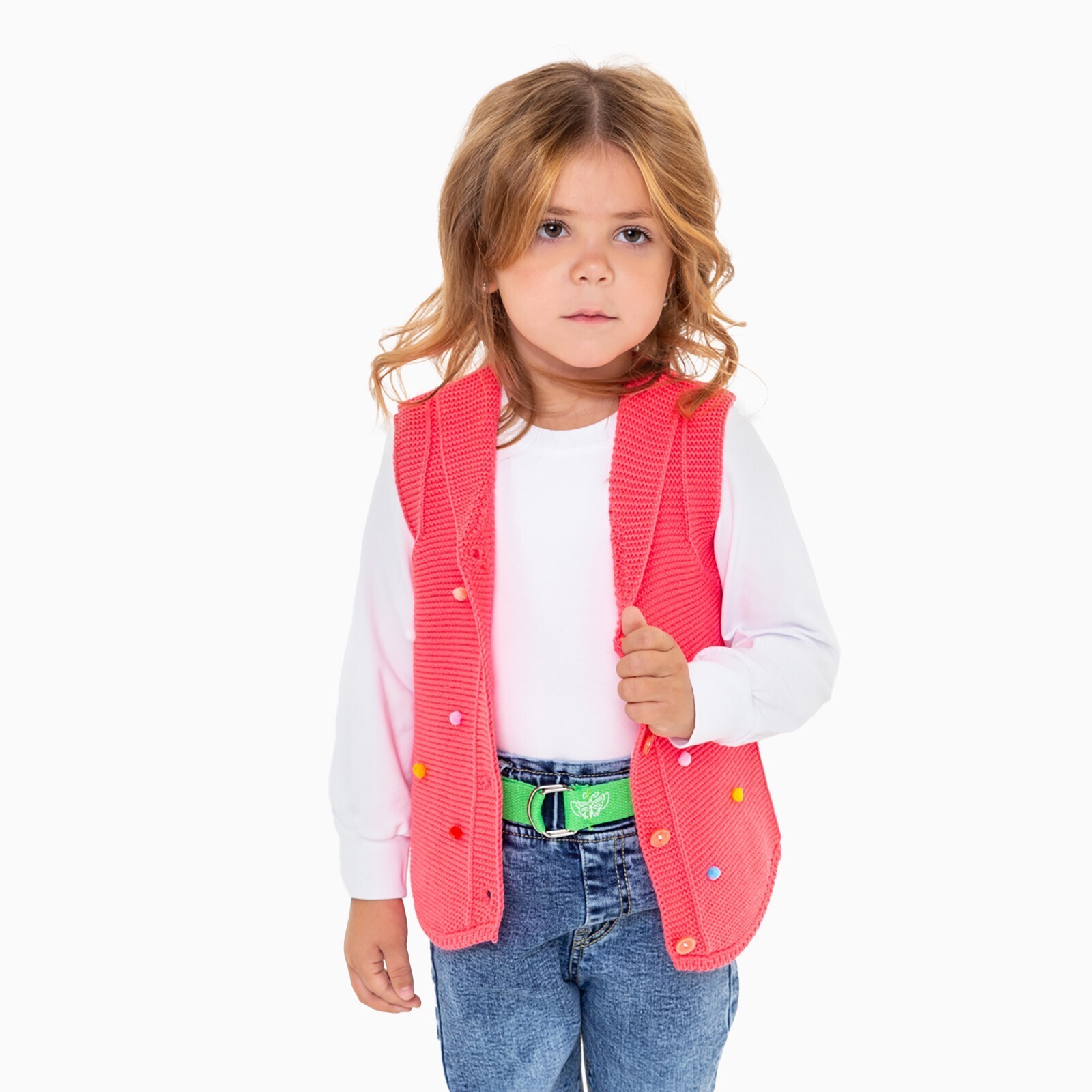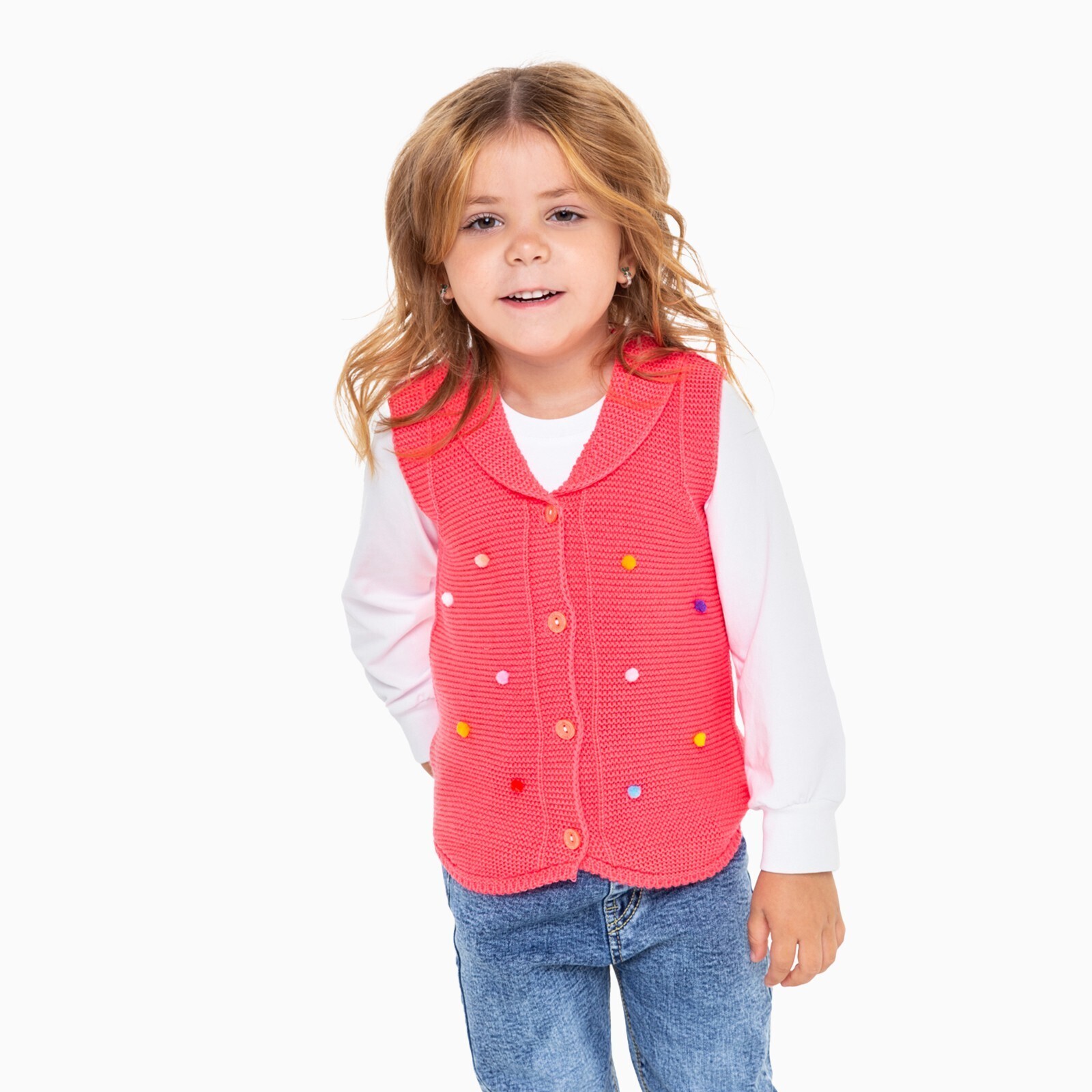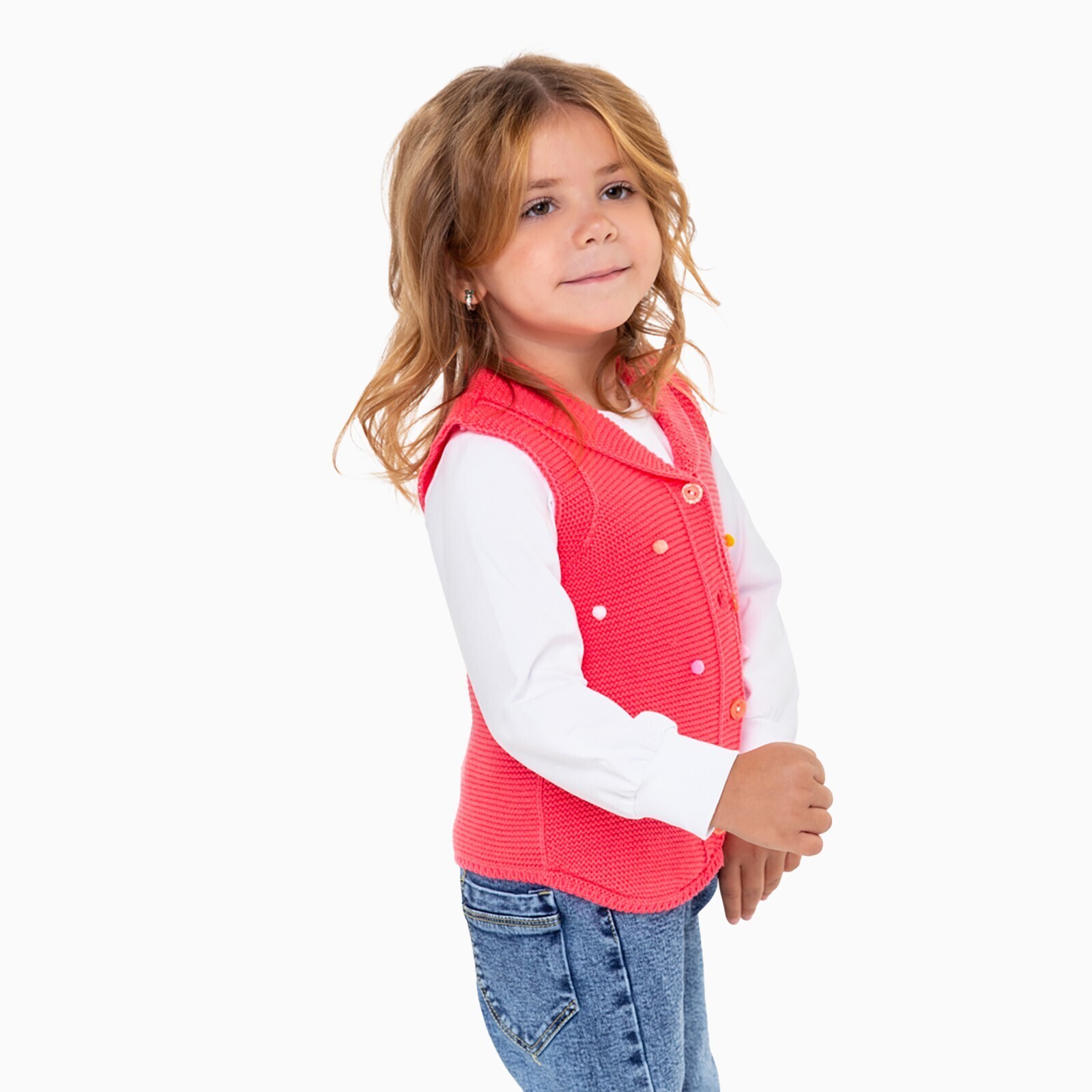 Жилет для девочки, цвет коралл, рост 80 см