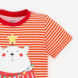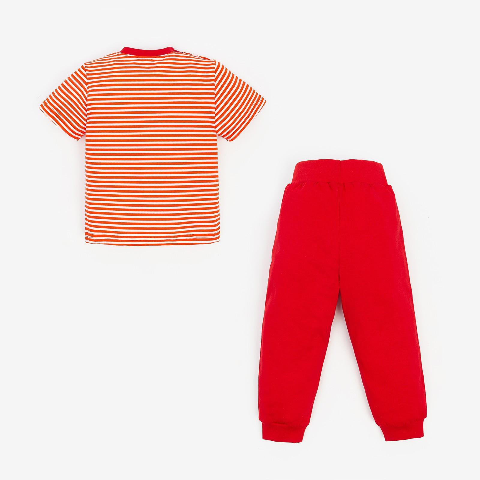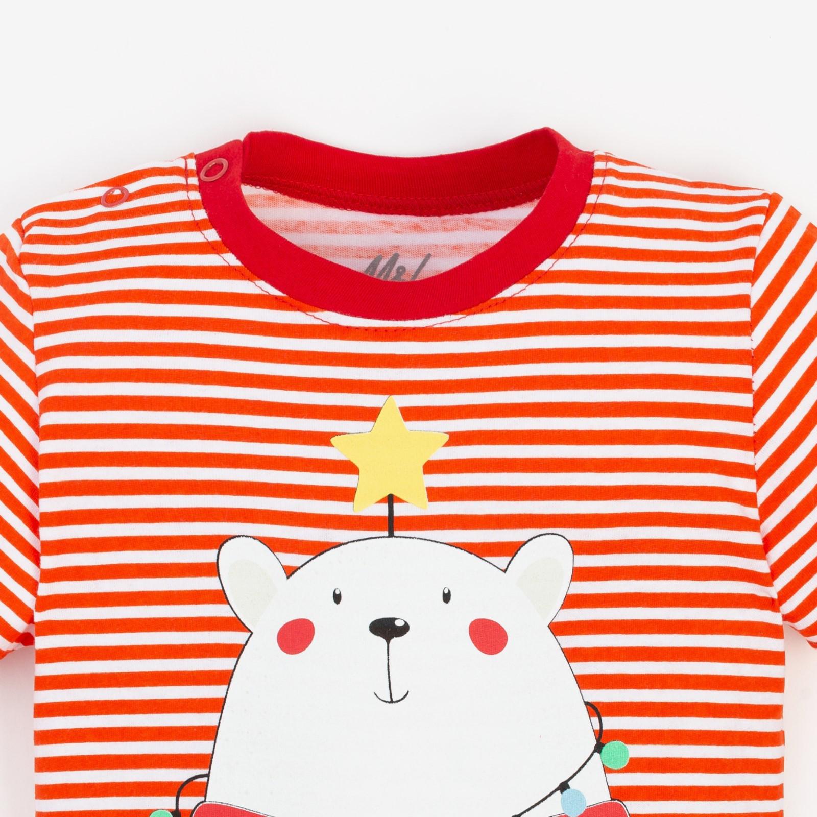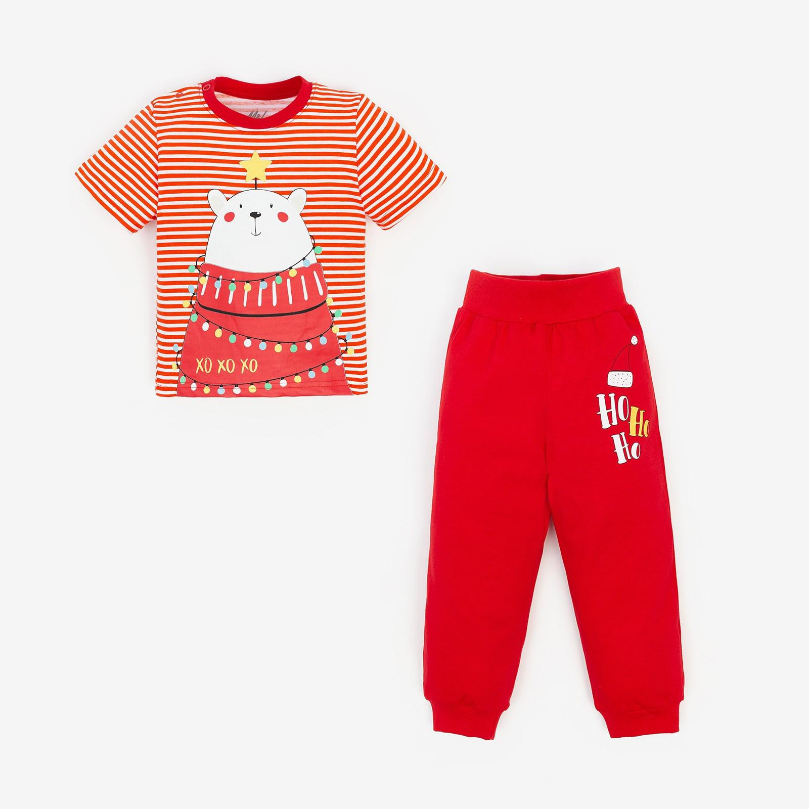 Пижама детская (футболка, брюки) Медведь/полоска, цвет красный/белый, рост 74 см