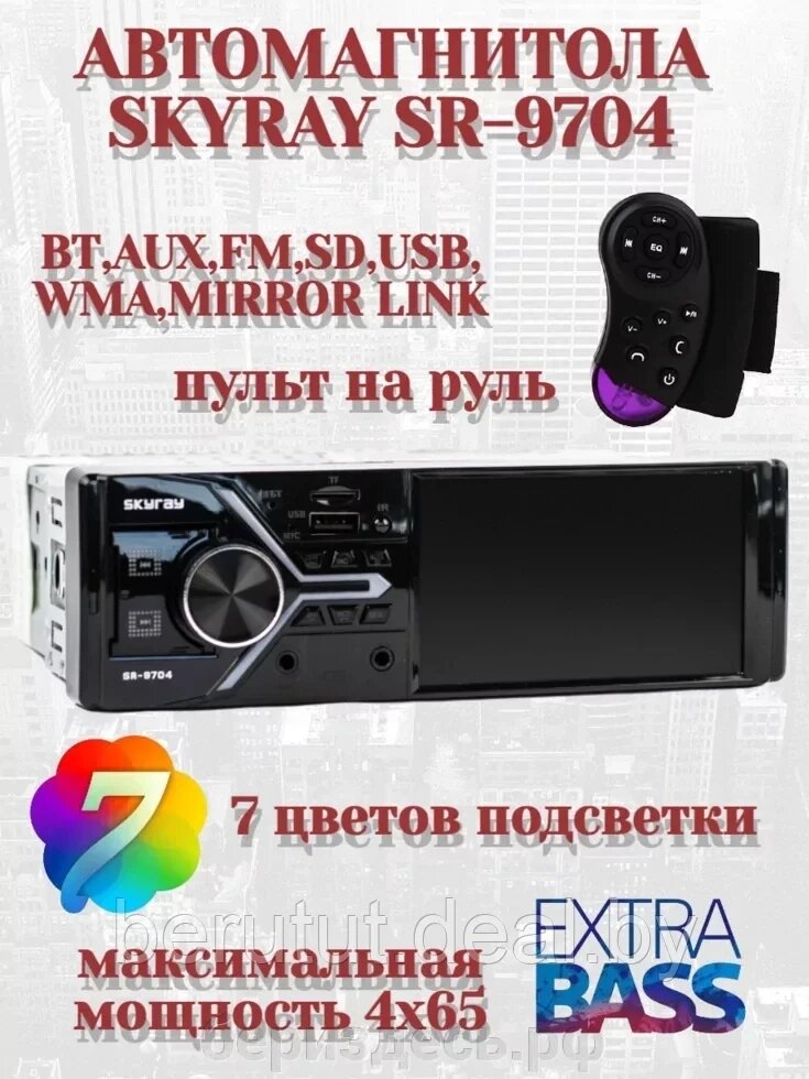 Автомагнитола 1 din с экраном, пультом на руль SKYRAY SR 9704 65Wx4 MirrorLink MyLatso