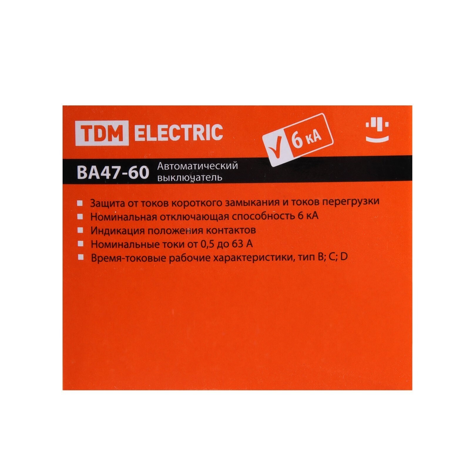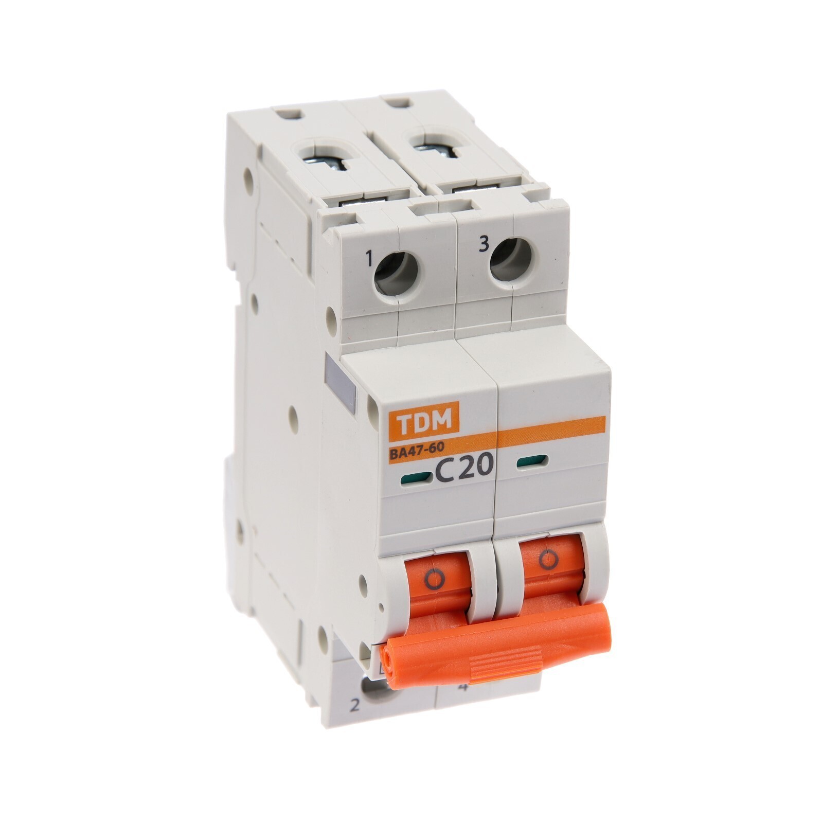 Выключатель автоматический TDM ВА47-60, 2п, 20 А, 6 кА, C, SQ0223-0094